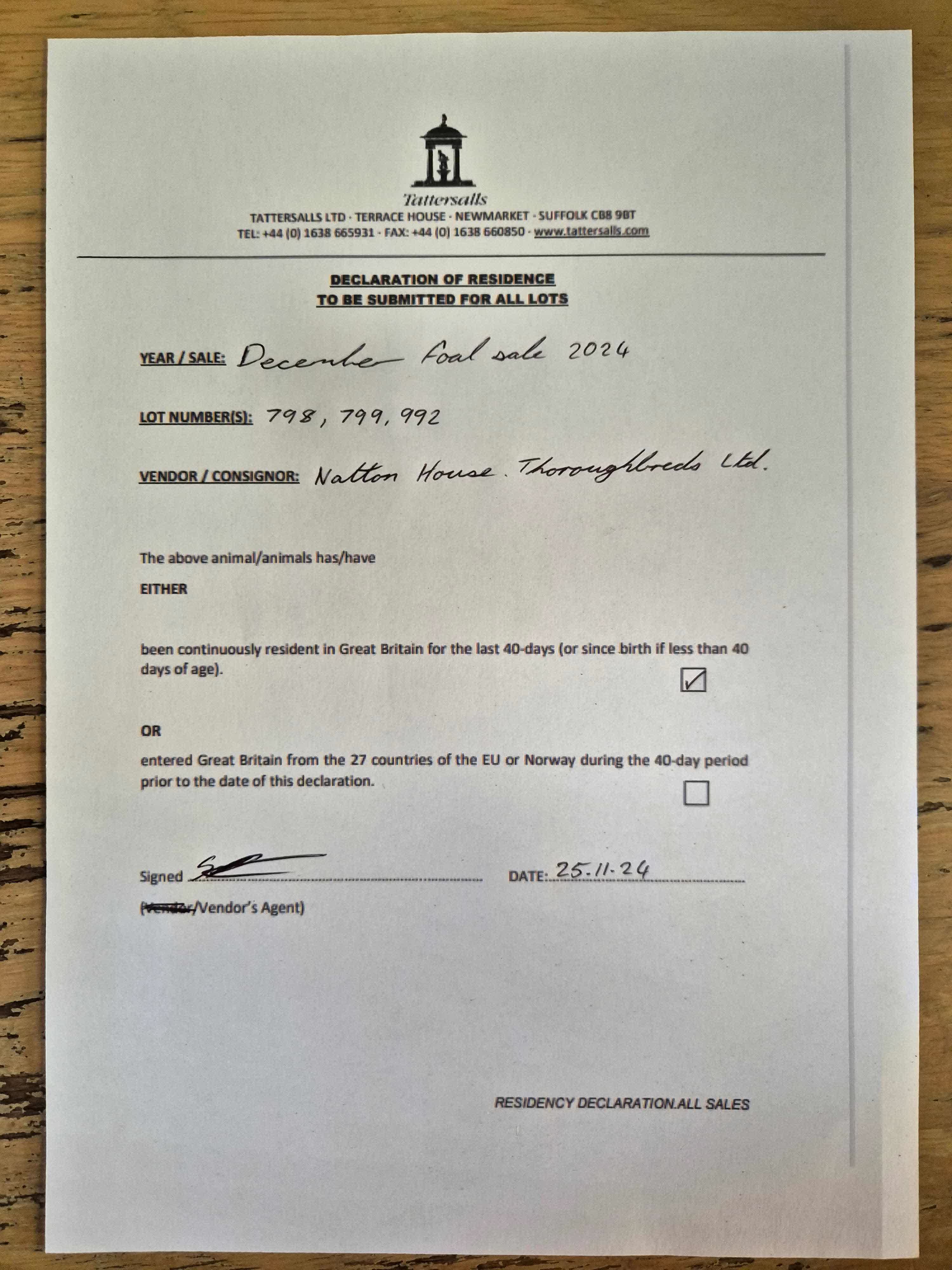 Consignor: Natton House Thoroughbreds Ltd.
