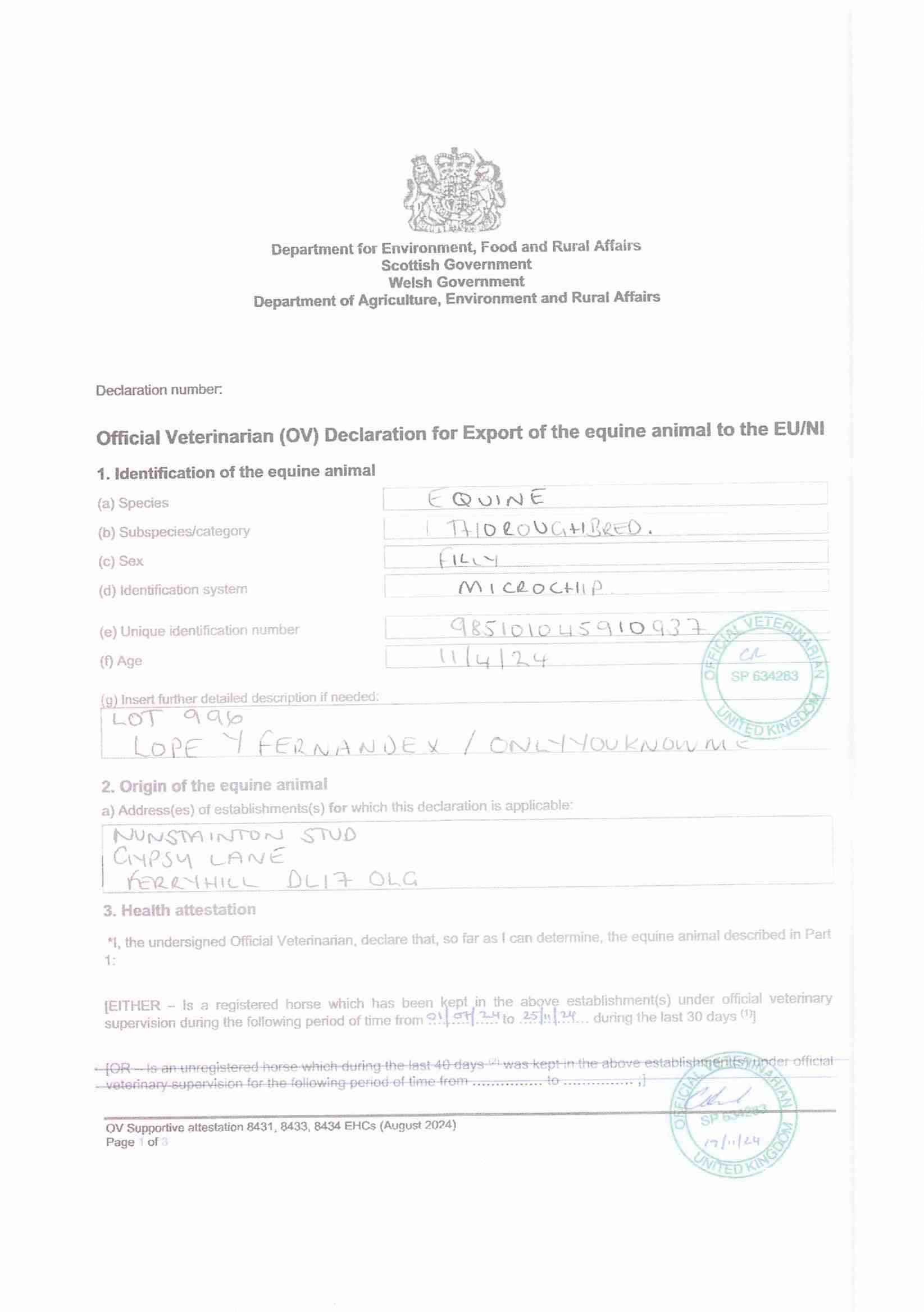 Consignor: Nunstainton Stud