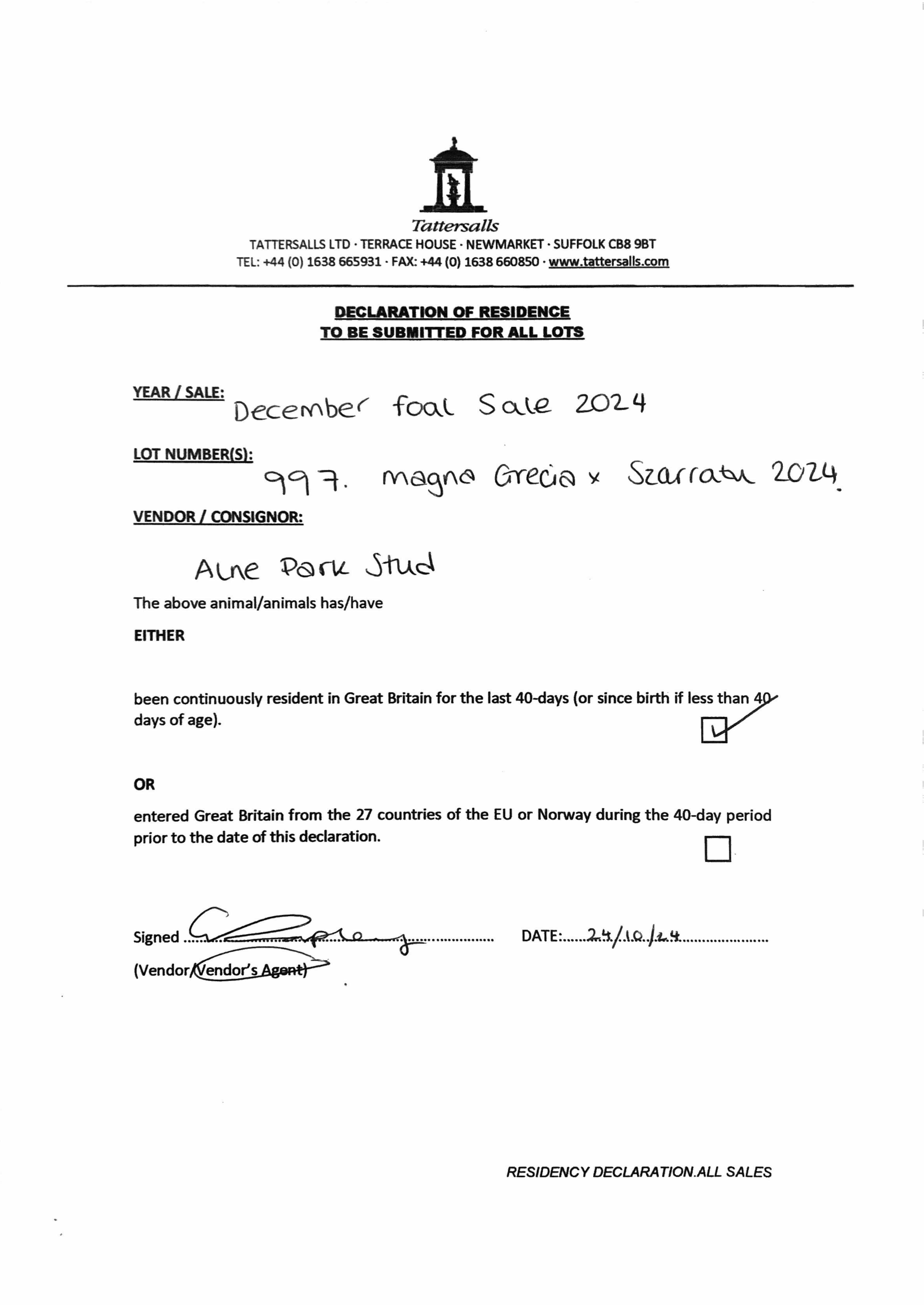 December Foal Sale 2025 lot 961 F. by Blackbeard (IRE) 2025, Alne Park Stud=>Equine Express 5,000 gns