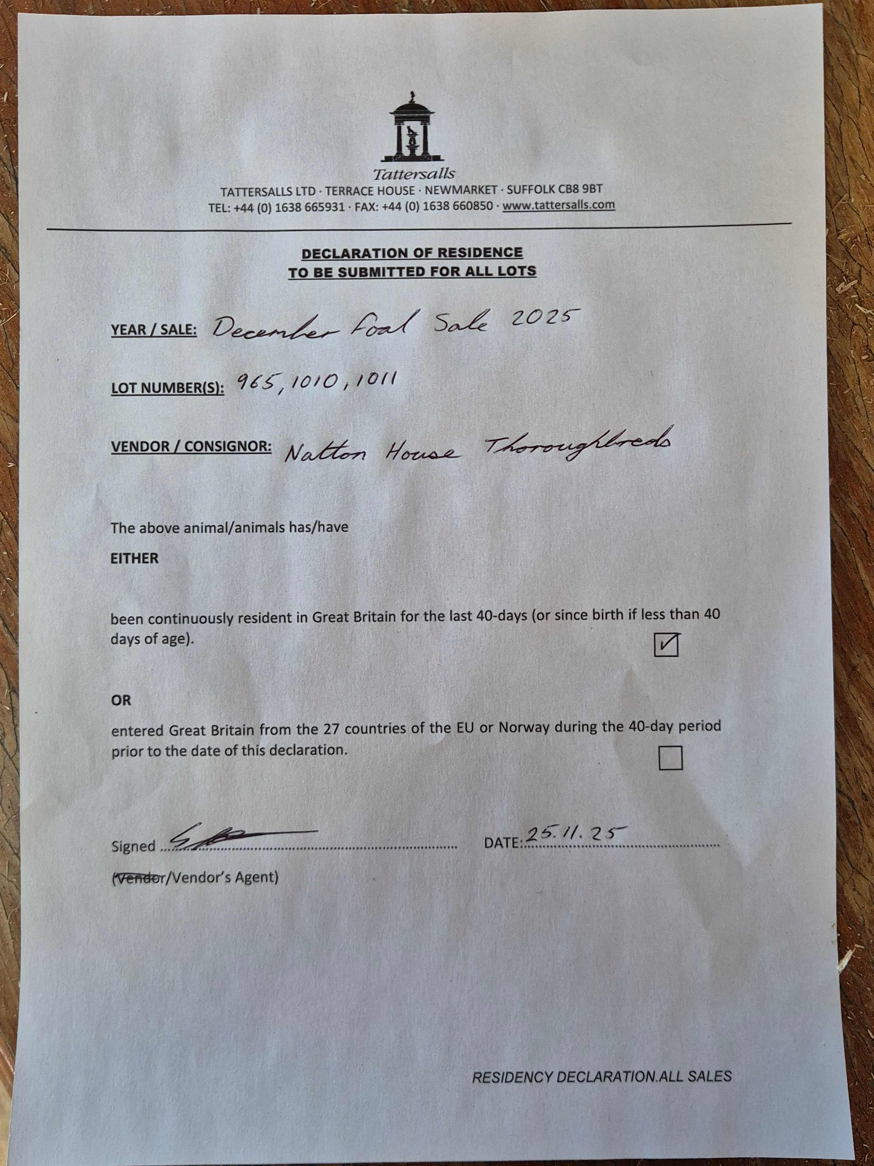 Consignor: Natton House Thoroughbreds Ltd.
