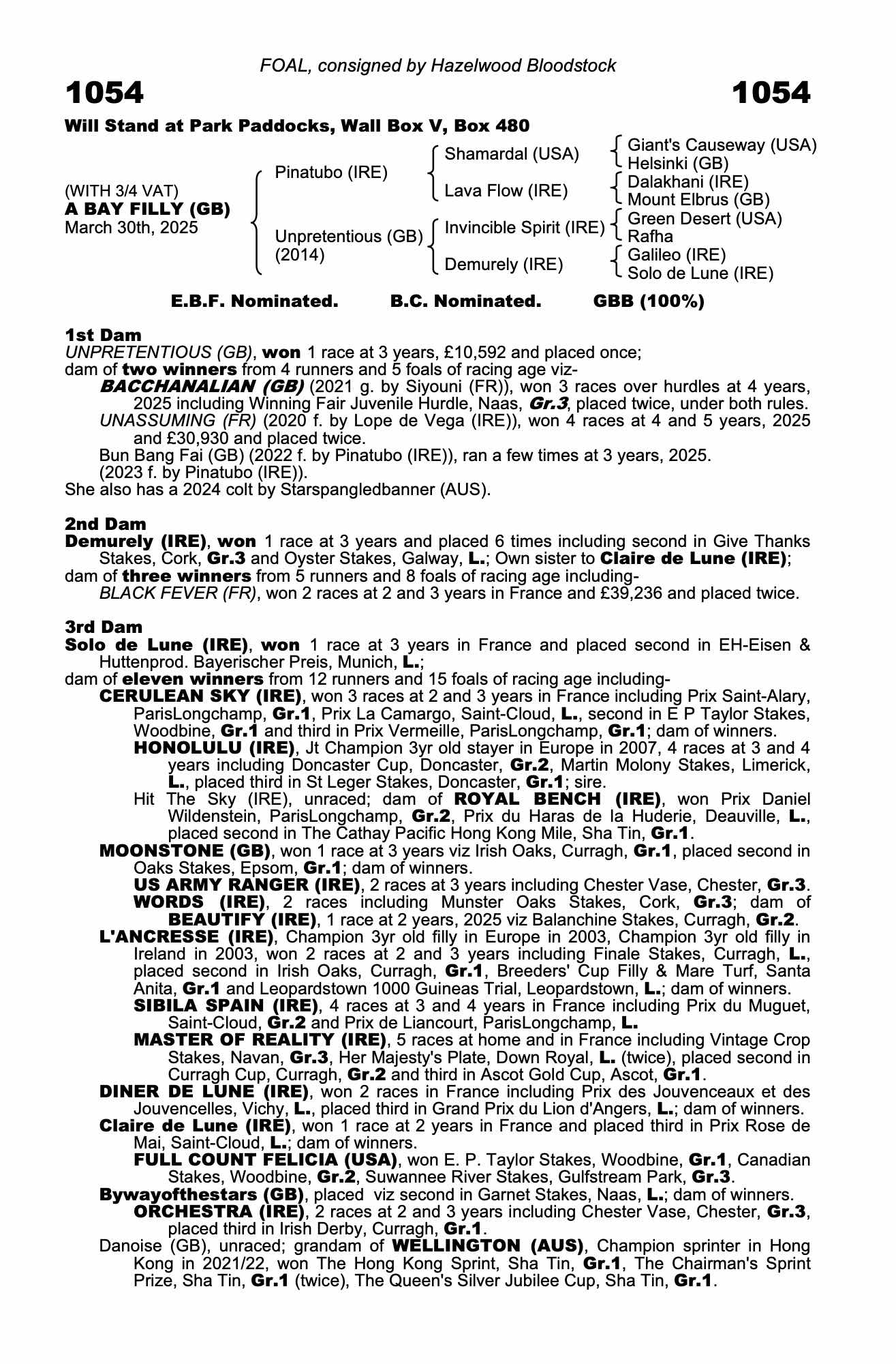Consignor: Hazelwood Bloodstock
