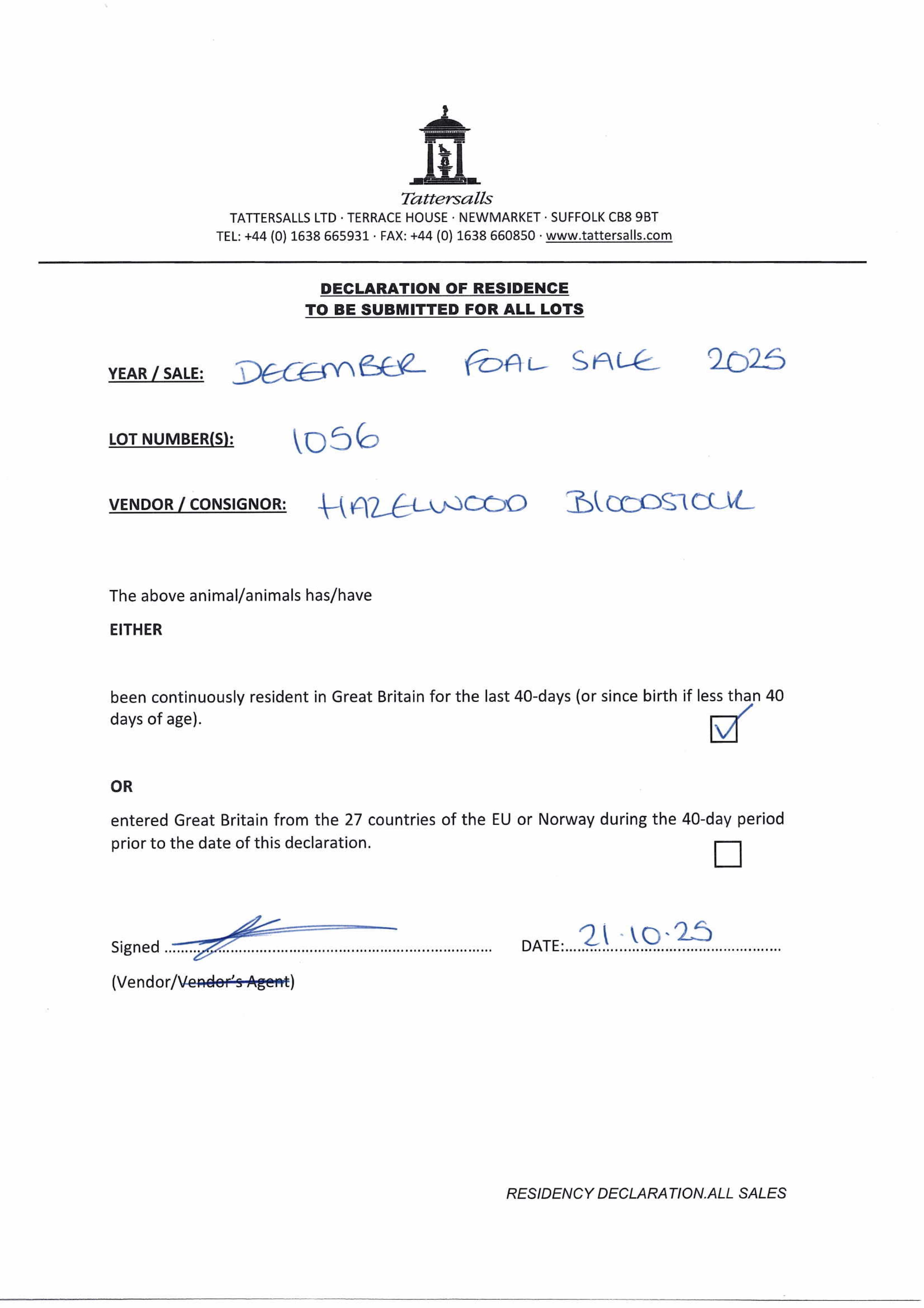 Online Sale - 11th December 2025 lot 72, Harley Stud=>Amazon Bloodstock 3,000 gns