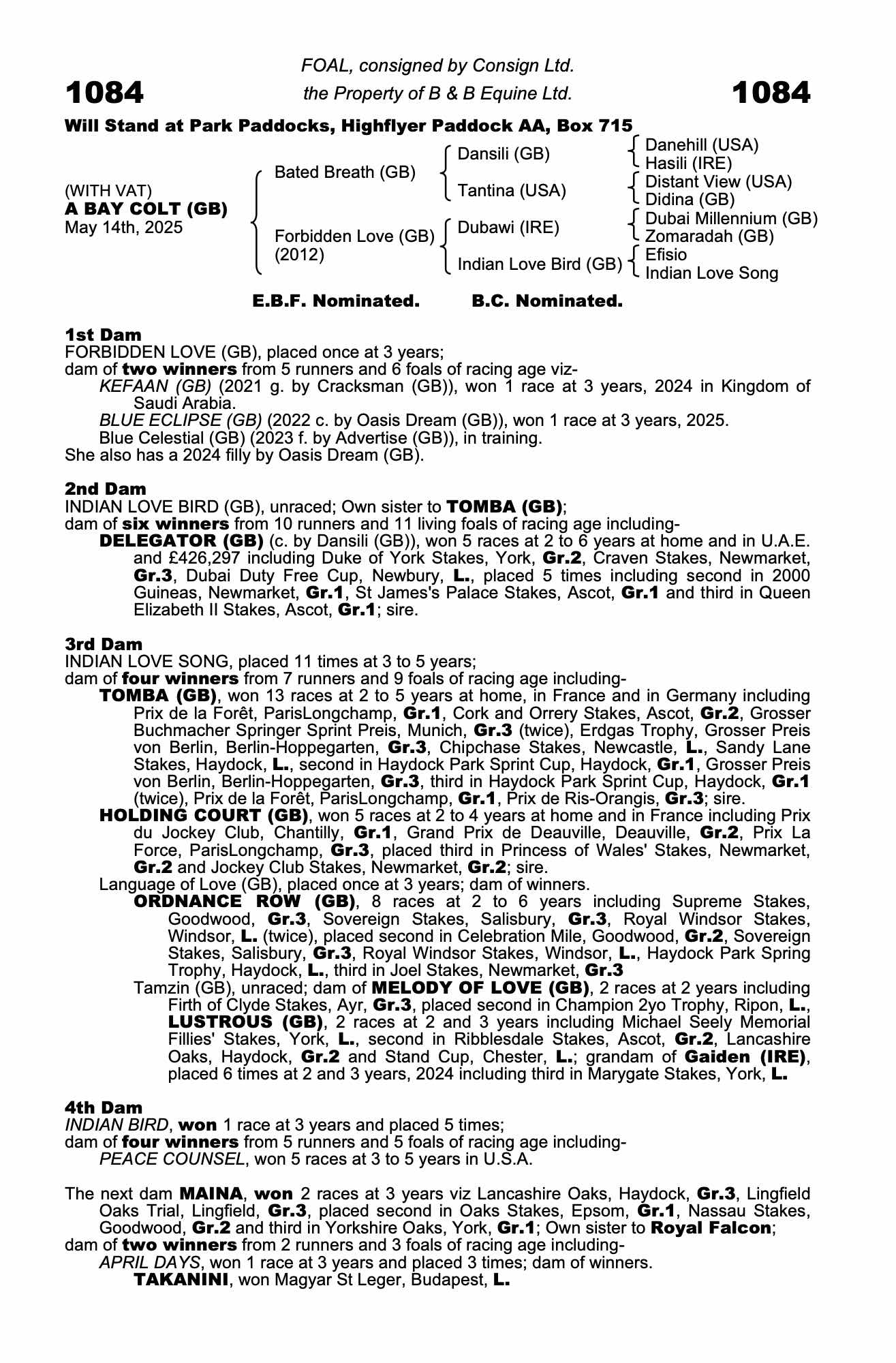 December Foal Sale 2024 lot 1158 F. by Oasis Dream (GB) 2024, Barton Stud=>Vendor 10,000 gns