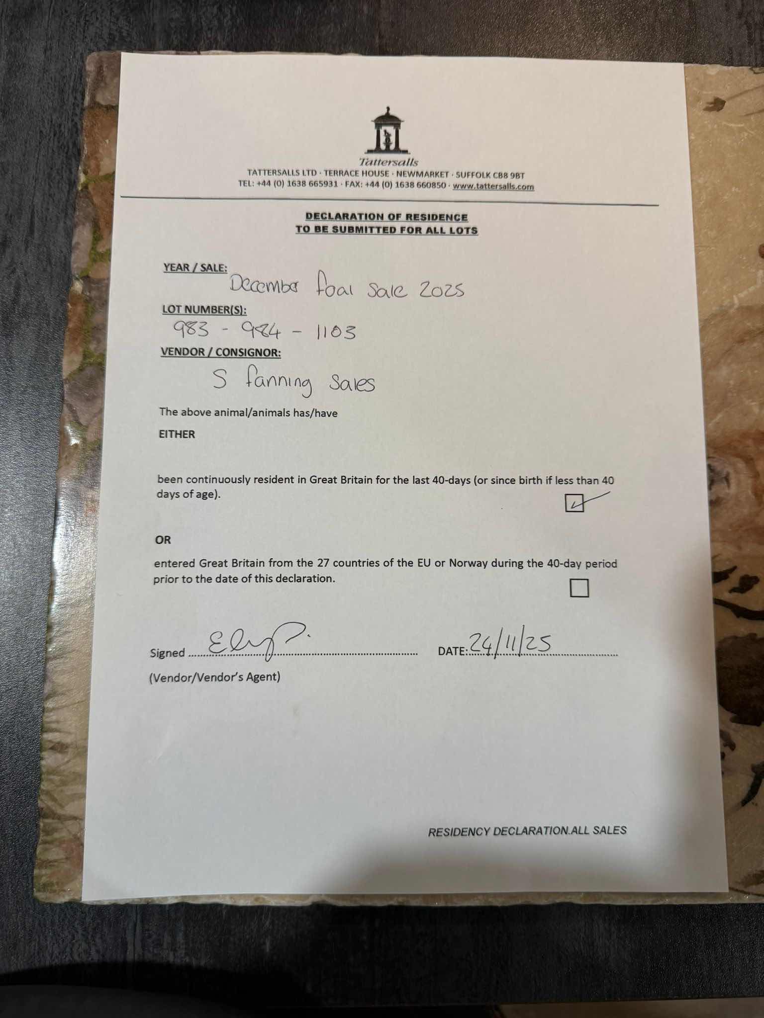 Consignor: S Fanning Sales
