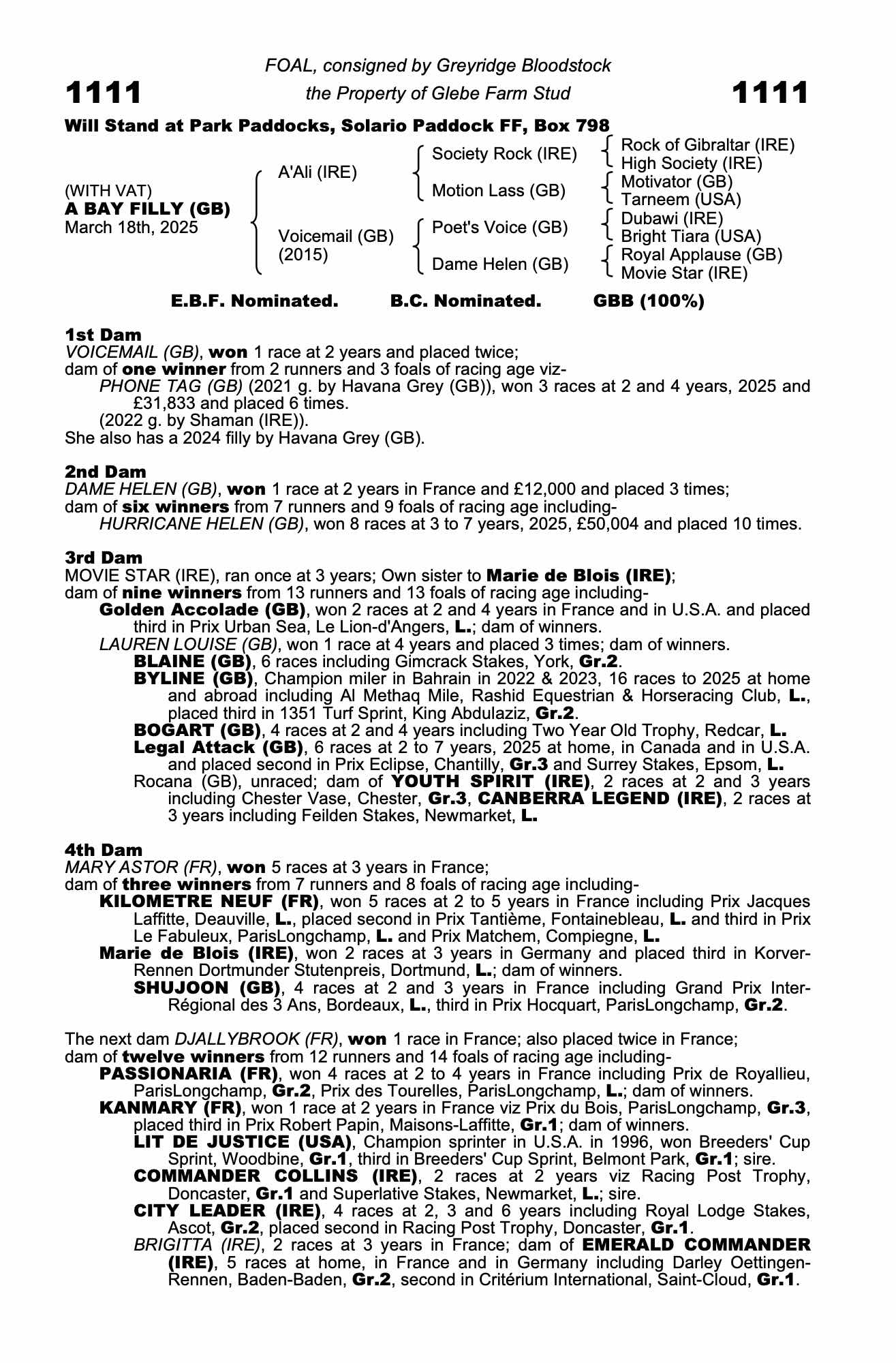 October Yearling Sale, Book 3 2025 lot 1659 F. by Havana Grey (GB) 2024, Greyridge Bloodstock=>Pegasus Bloodstock 35,000 gns