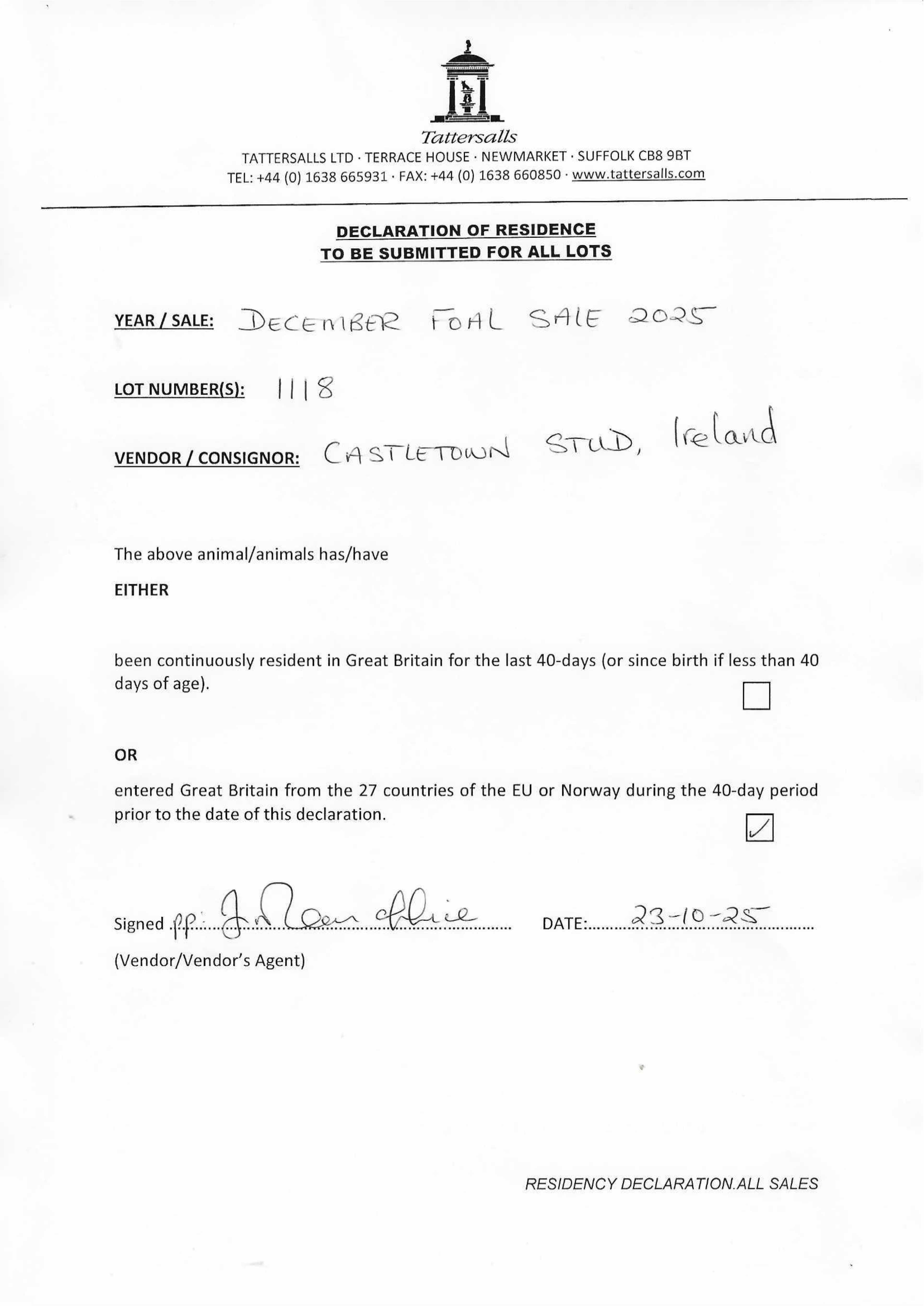 Consignor: Castletown Stud, Ireland