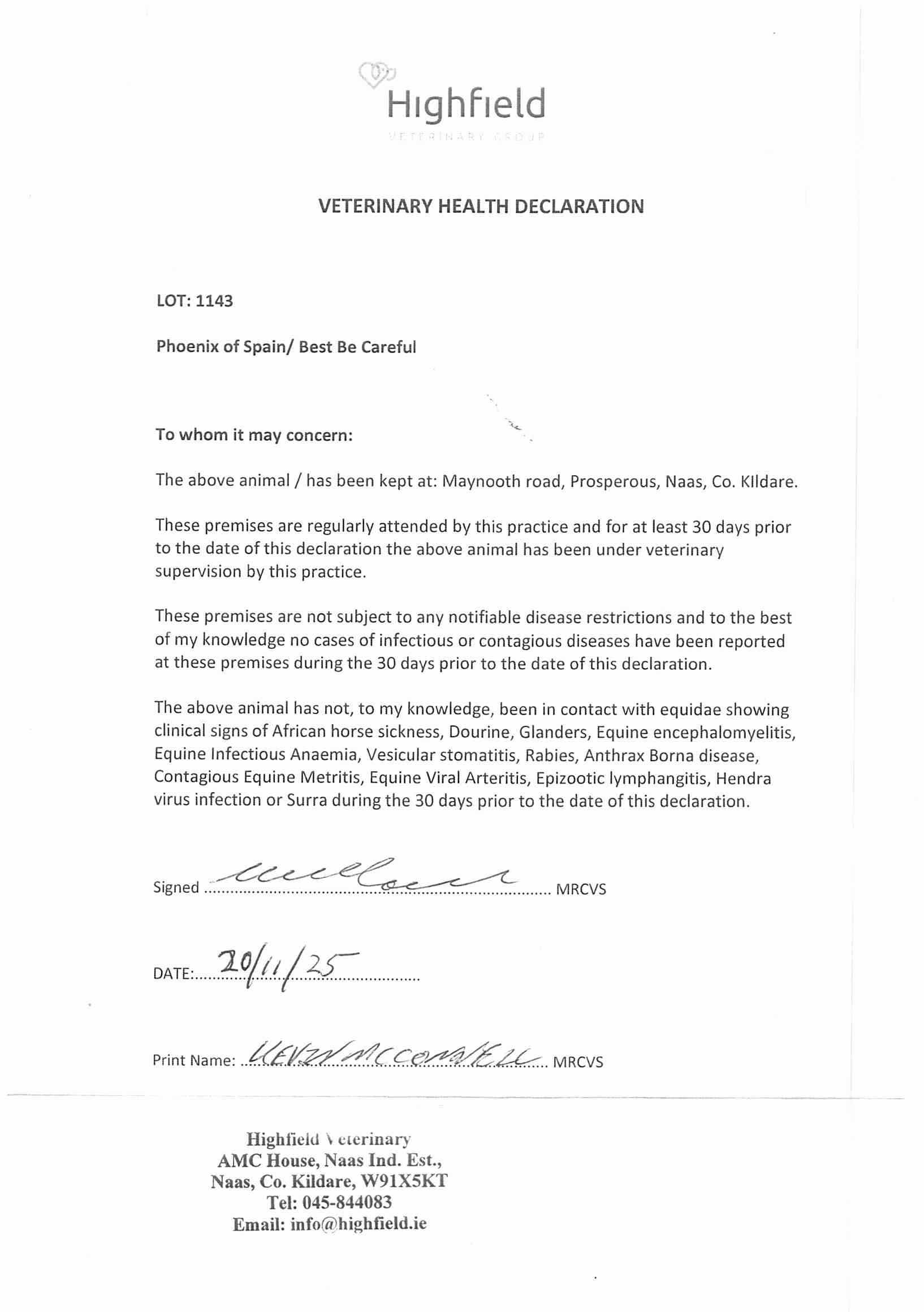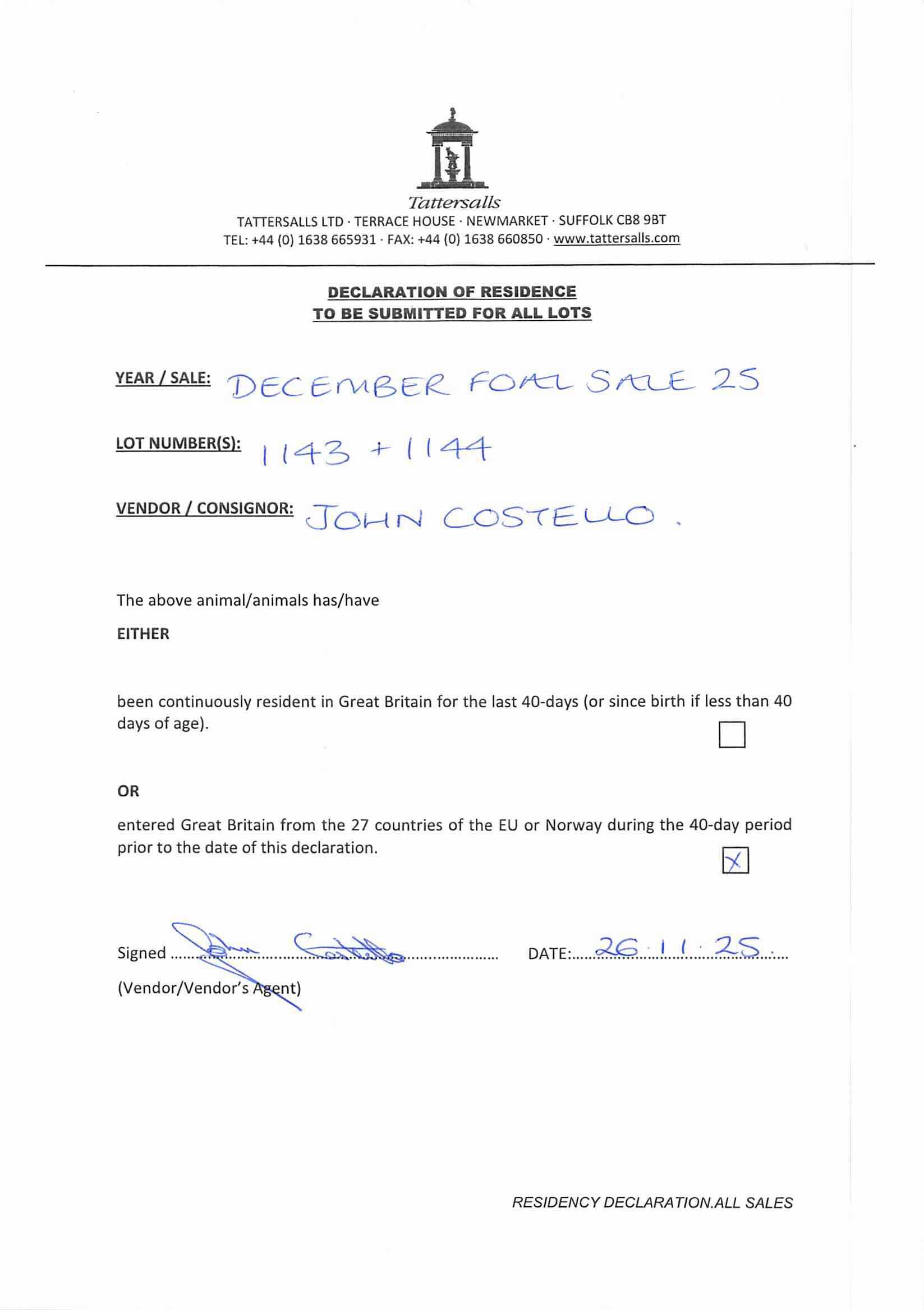 Sapphire Sale 2025 lot 36 C. by Nando Parrado (GB) 2024, Mr. John Costello=>Lot Not Sold €9,500
