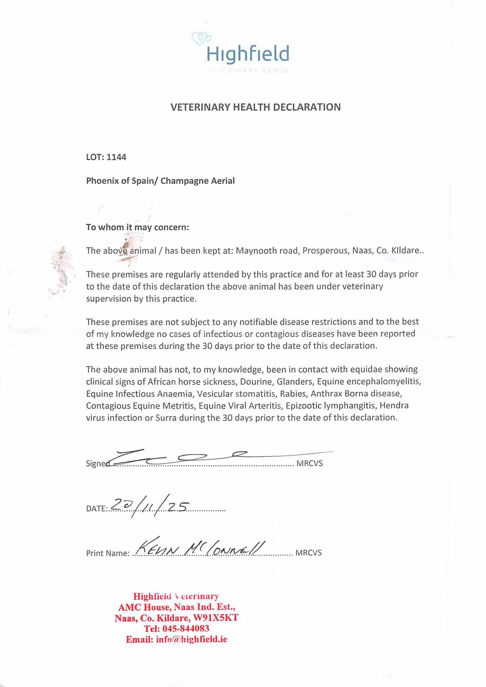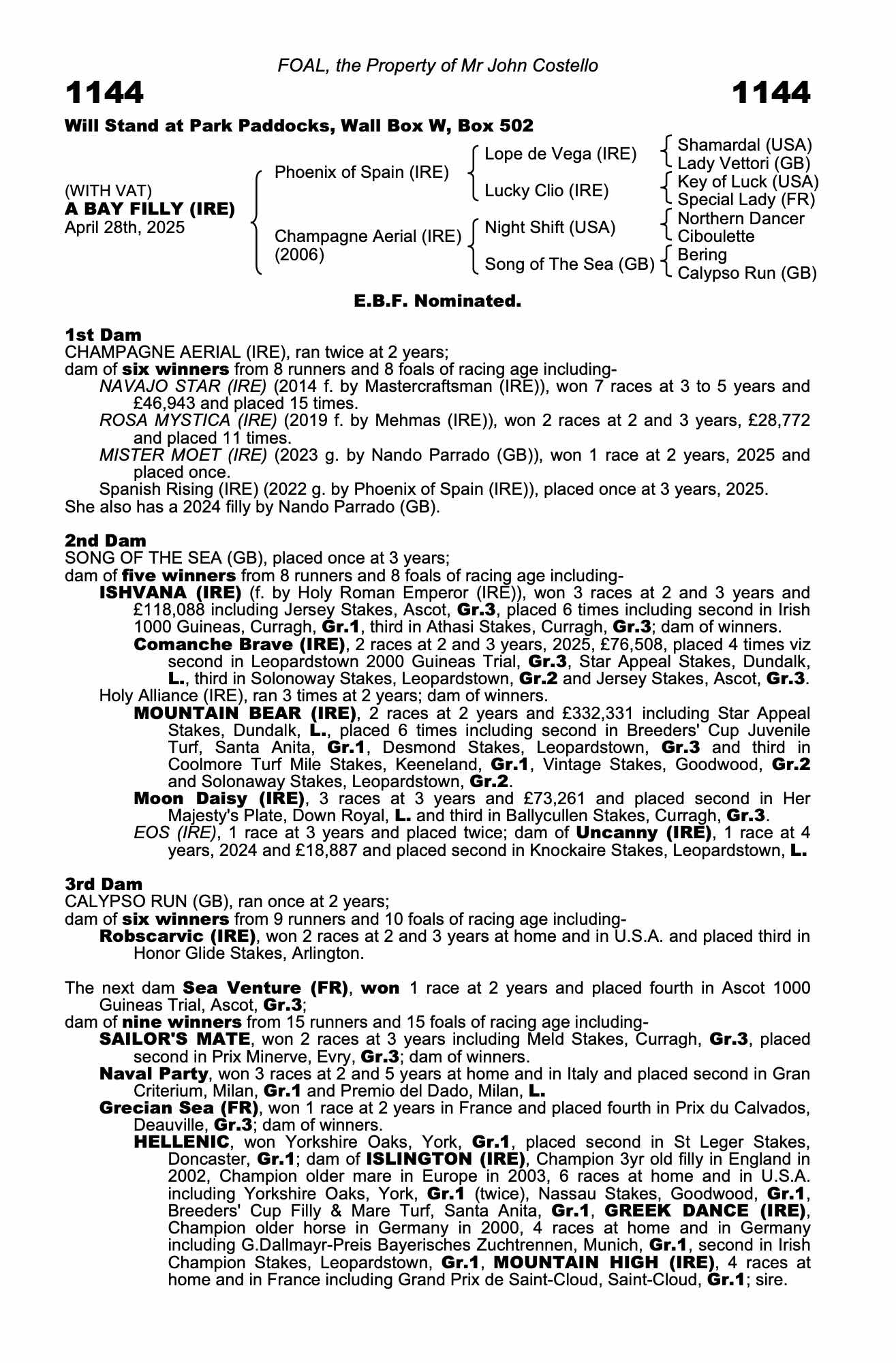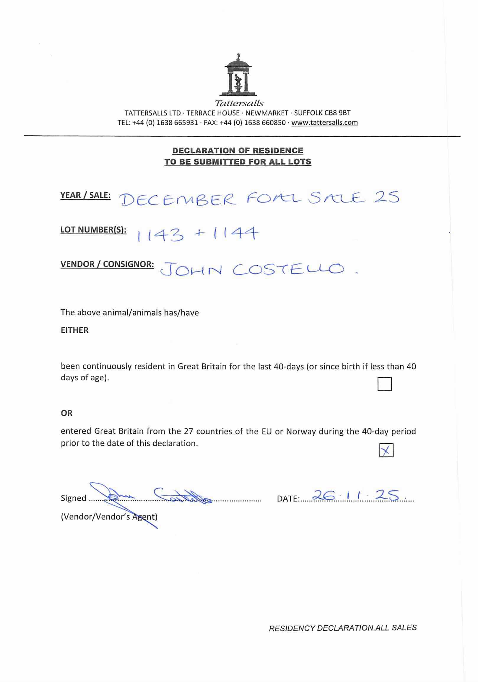 Consignor: Mr John Costello