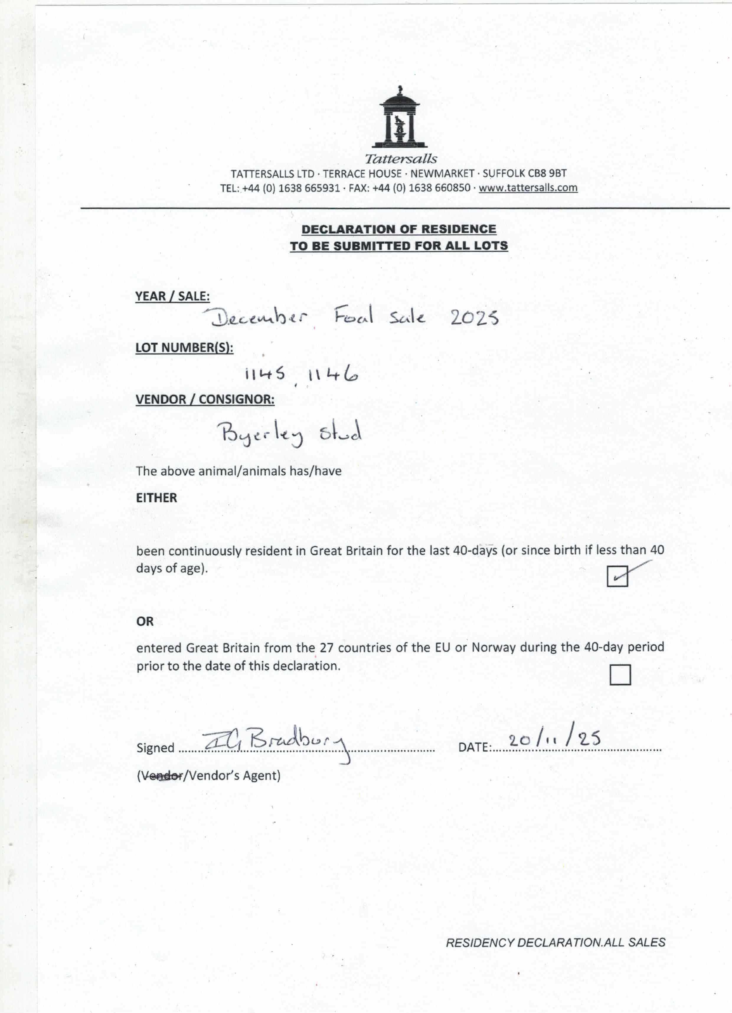 Consignor: Byerley Stud