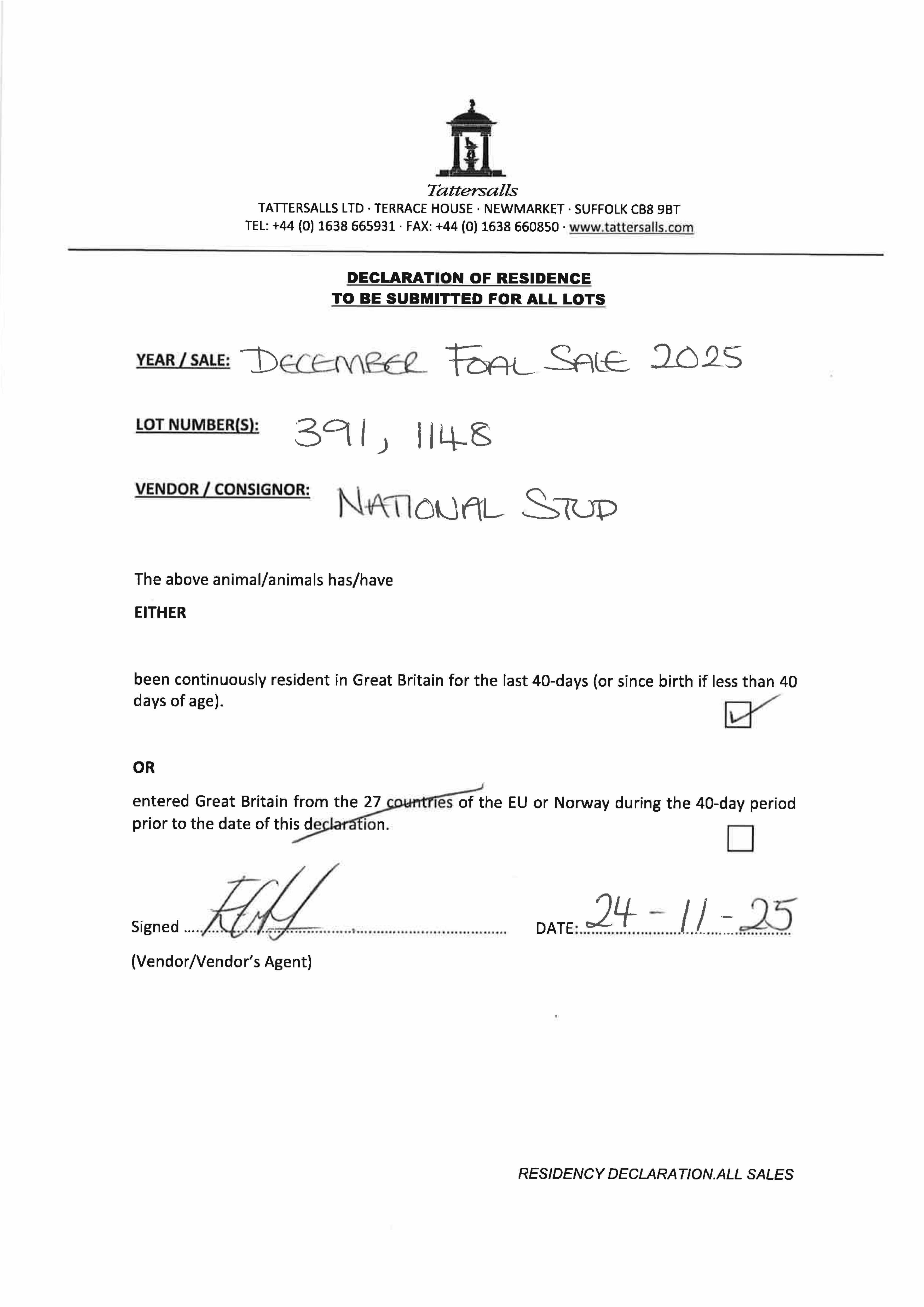 Online Sale - 11th December 2025 lot 63, The National Stud Ltd.=>Amazon Bloodstock 1,000 gns