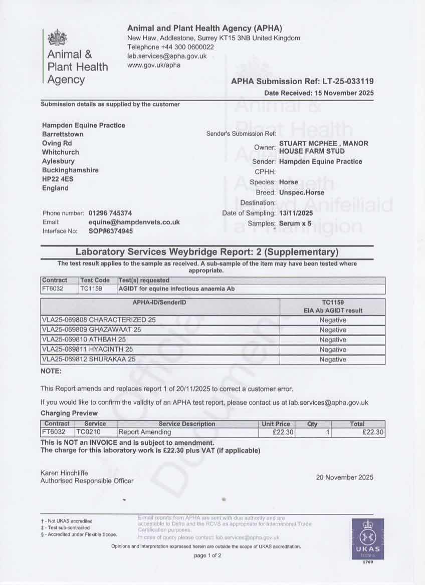 Consignor: Manor House Farm Stud