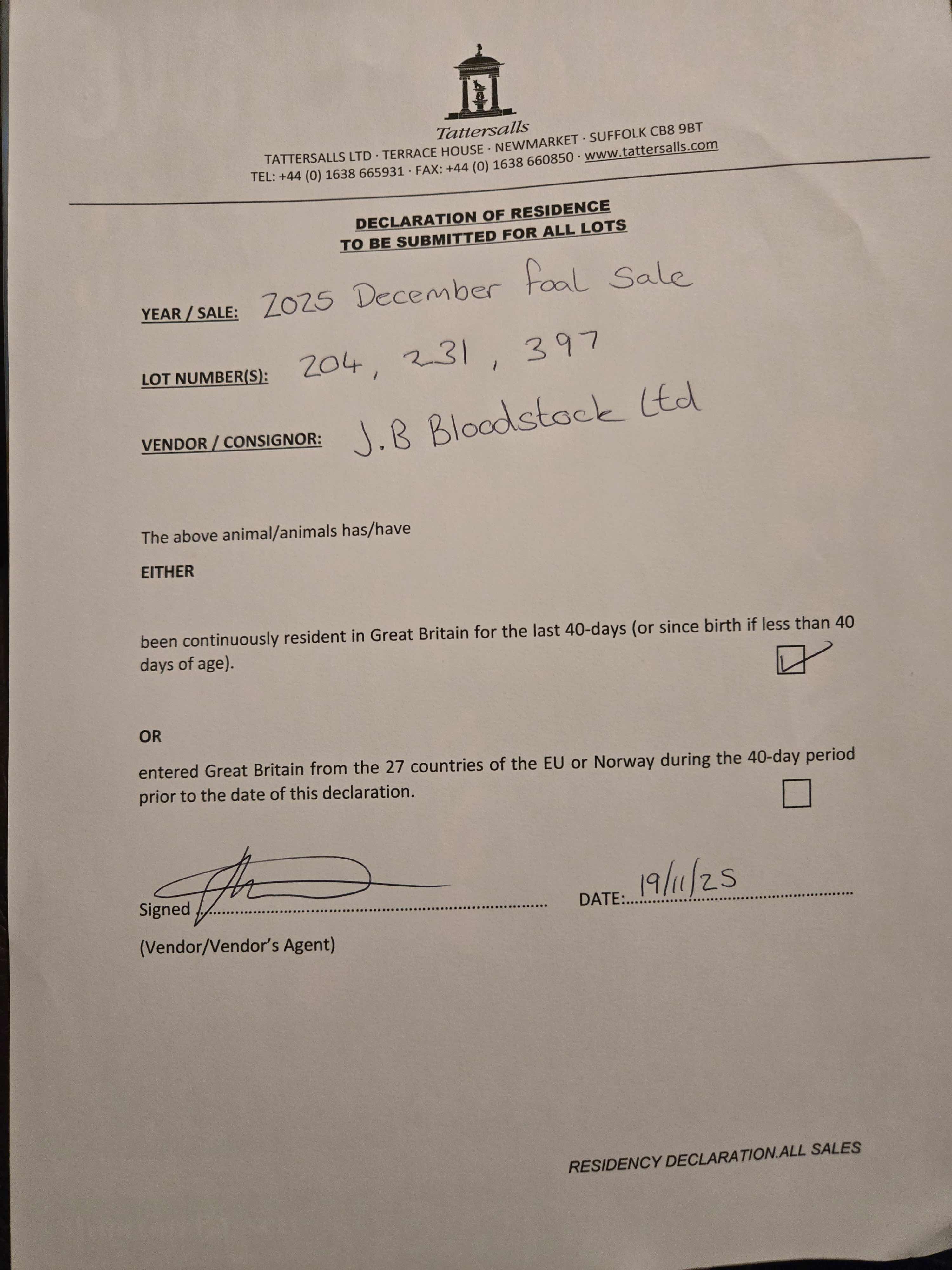 Consignor: J. B. Bloodstock Ltd.