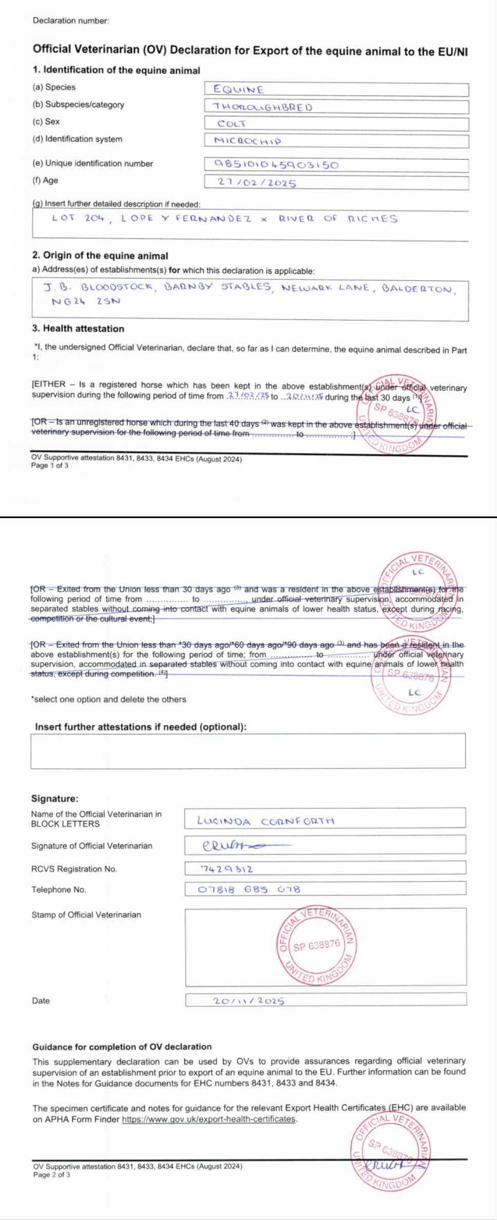 Contact: James Thomas ✆ 07480220271 ✉ James@jbbloodstock.co.uk