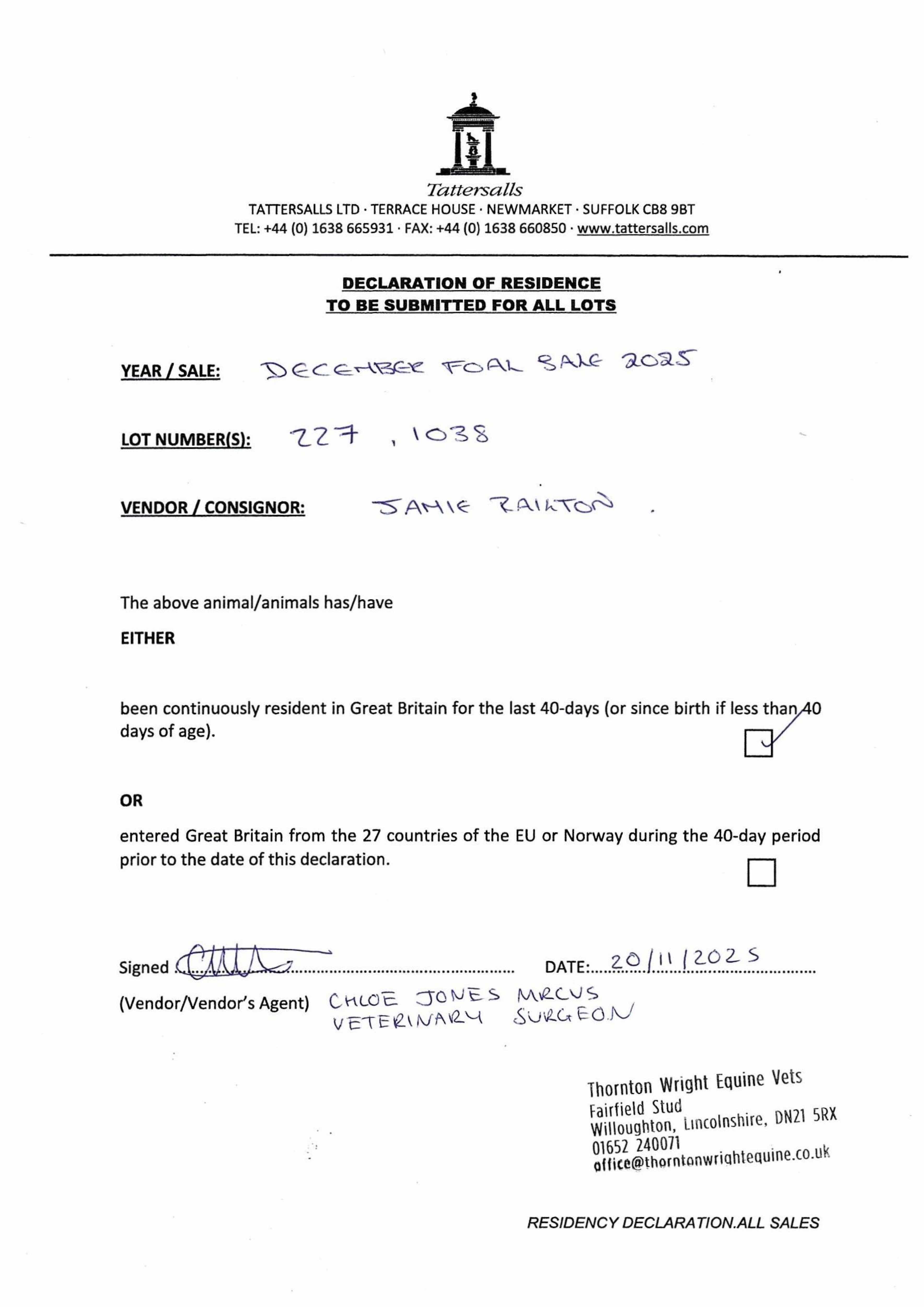 Lot 227 Soldier's Call (GB) /Harbour Beach (GB) Ch.F. (GB)