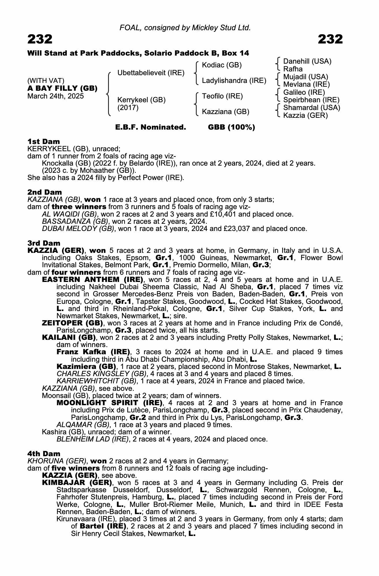Consignor: Mickley Stud Ltd.
