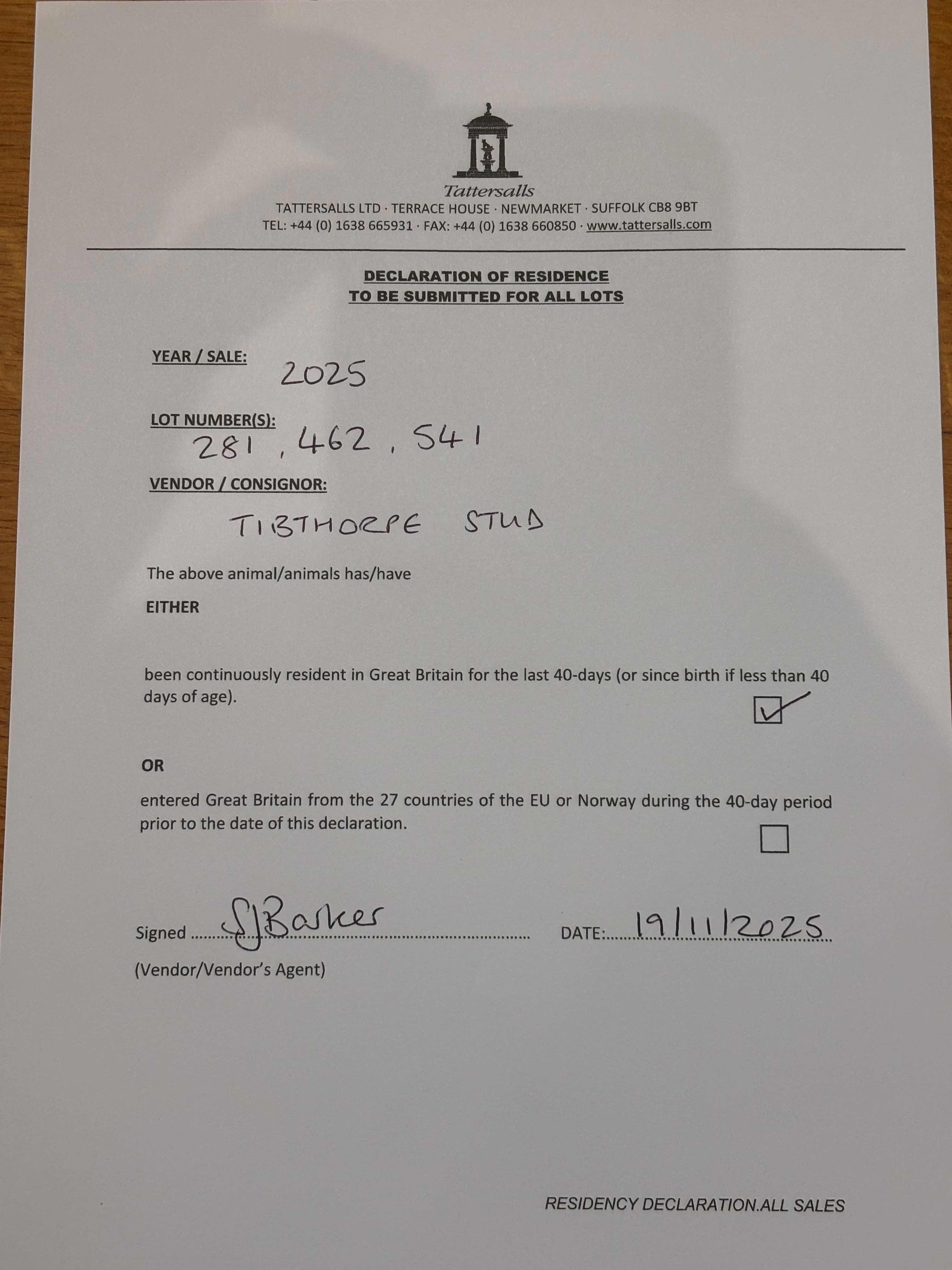 Consignor: Tibthorpe Stud