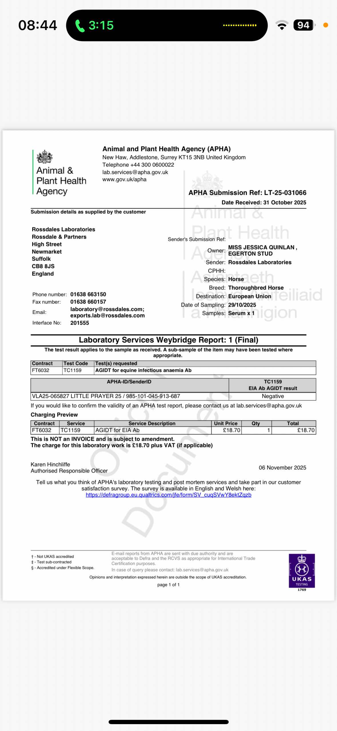 Official Veterinarian Declaration