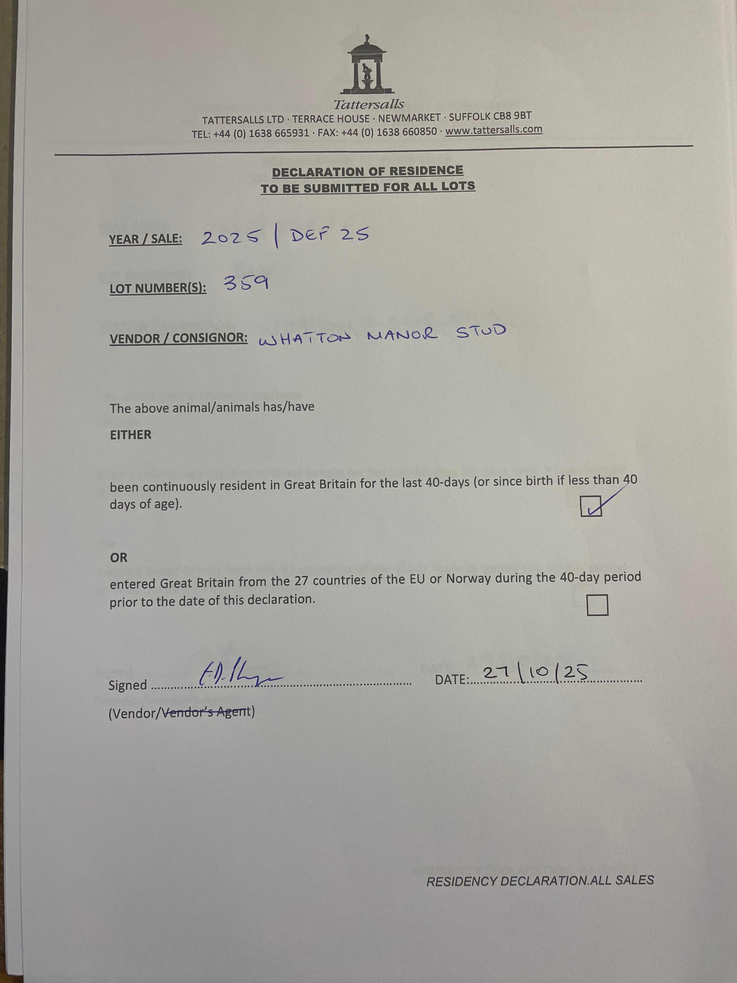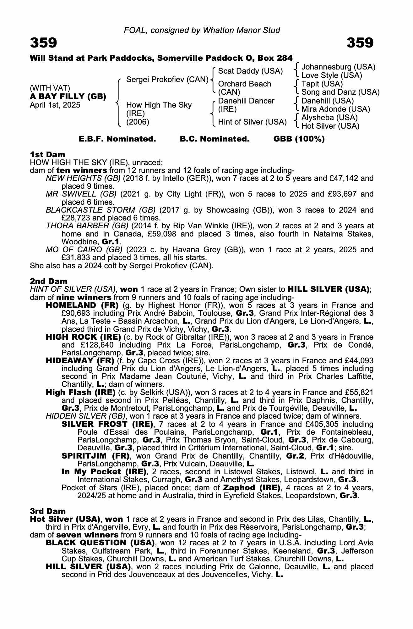 Consignor: Whatton Manor Stud