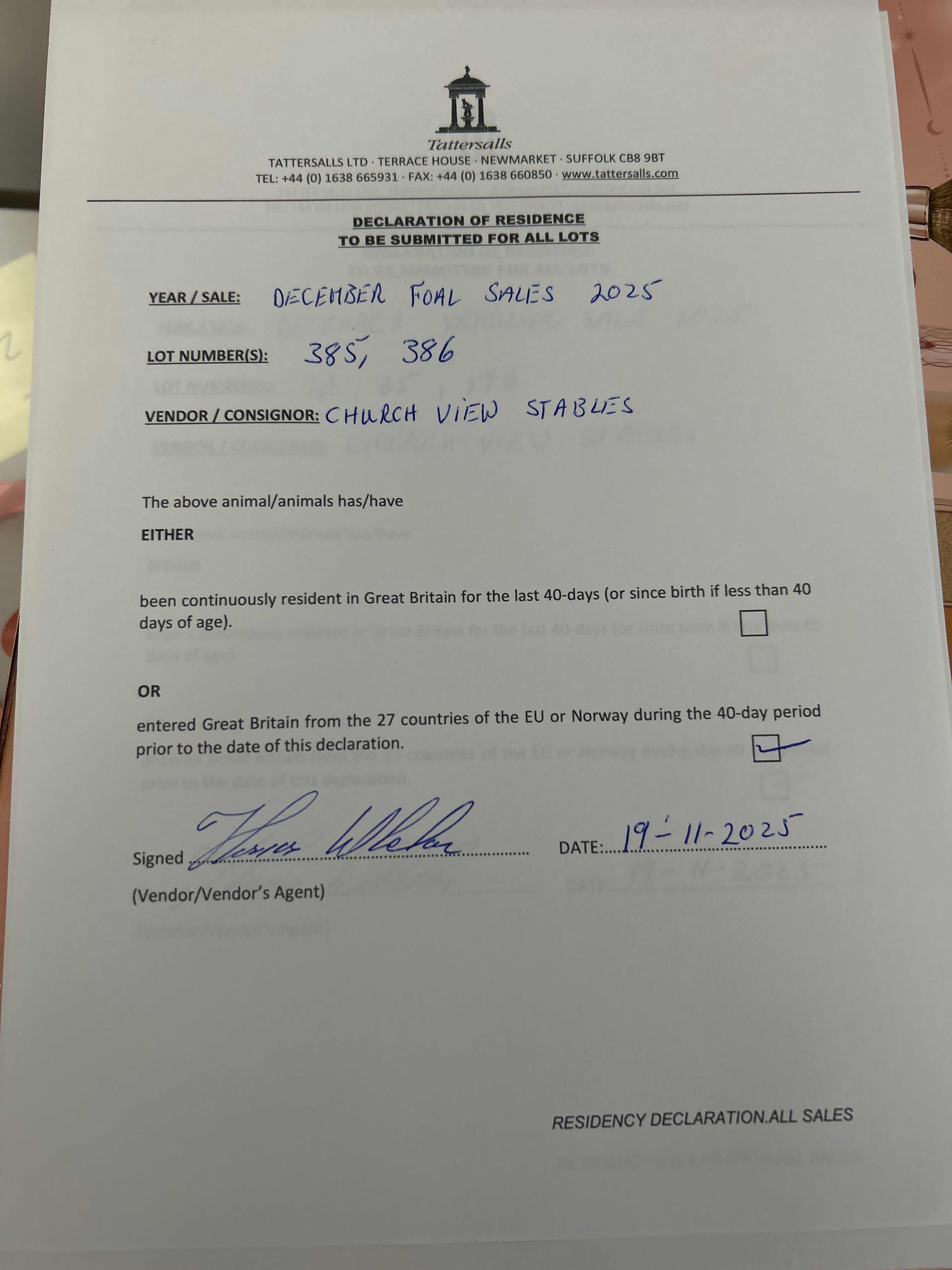 September Yearling Sale Part 1 2025 lot 315 F. by Supremacy (IRE) 2024, Church View Stables=>Vendor €32,000