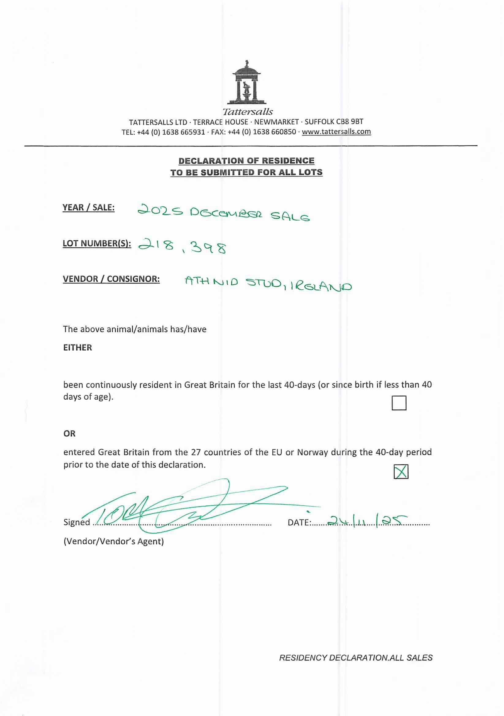 Consignor: Athnid Stud, Ireland