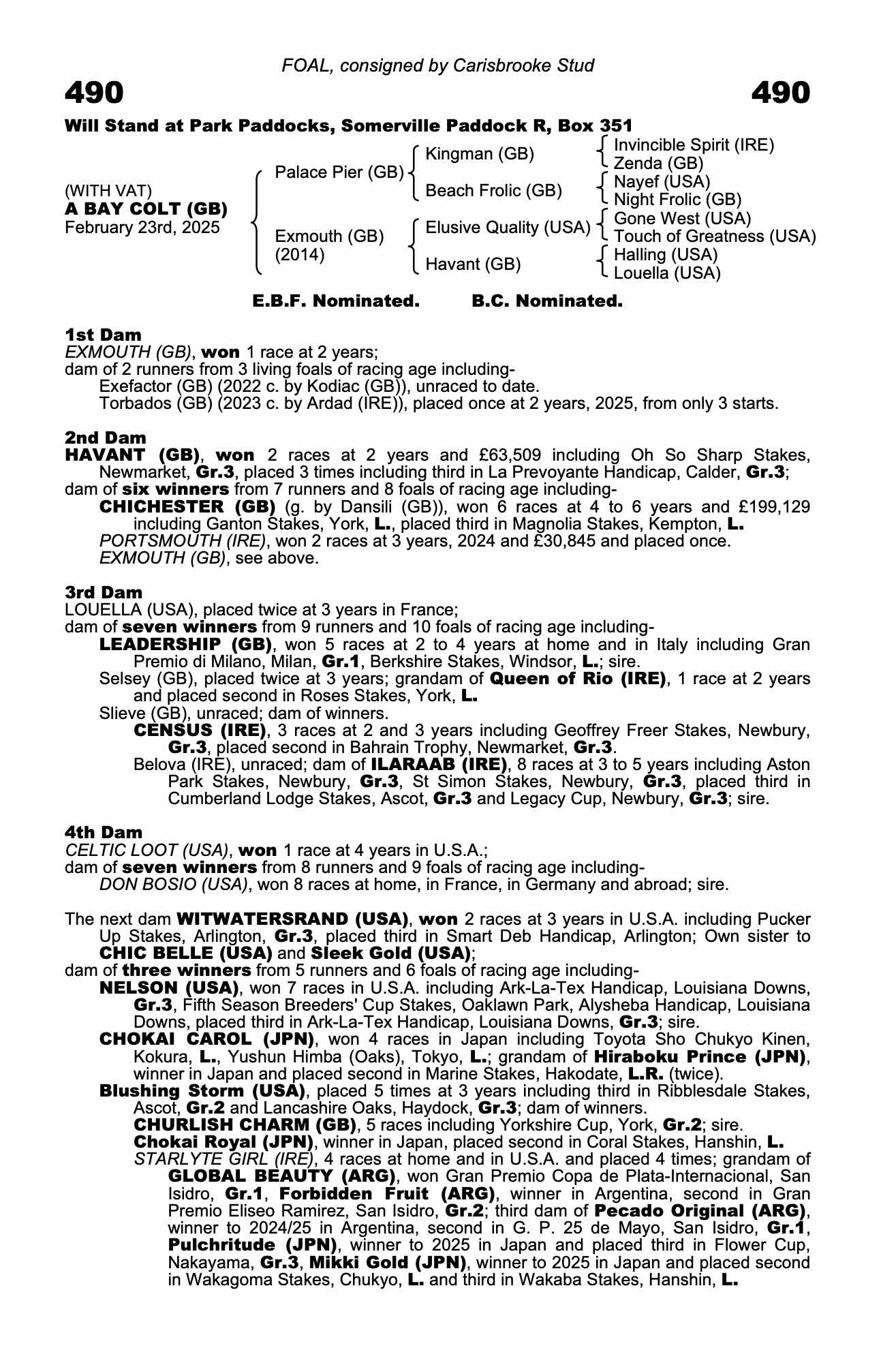Consignor: Carisbrooke Stud