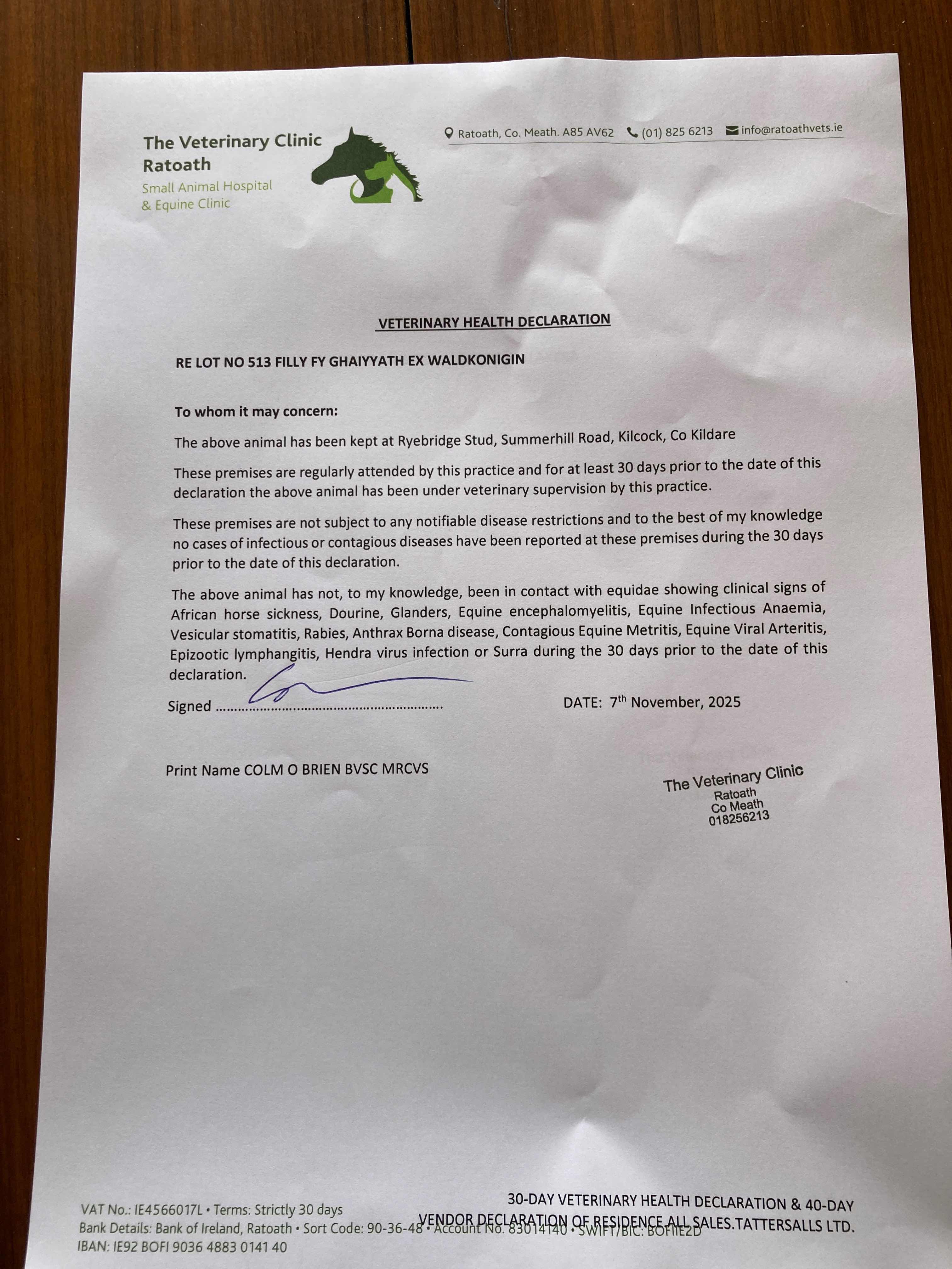 Ryebridge Stud, Ireland