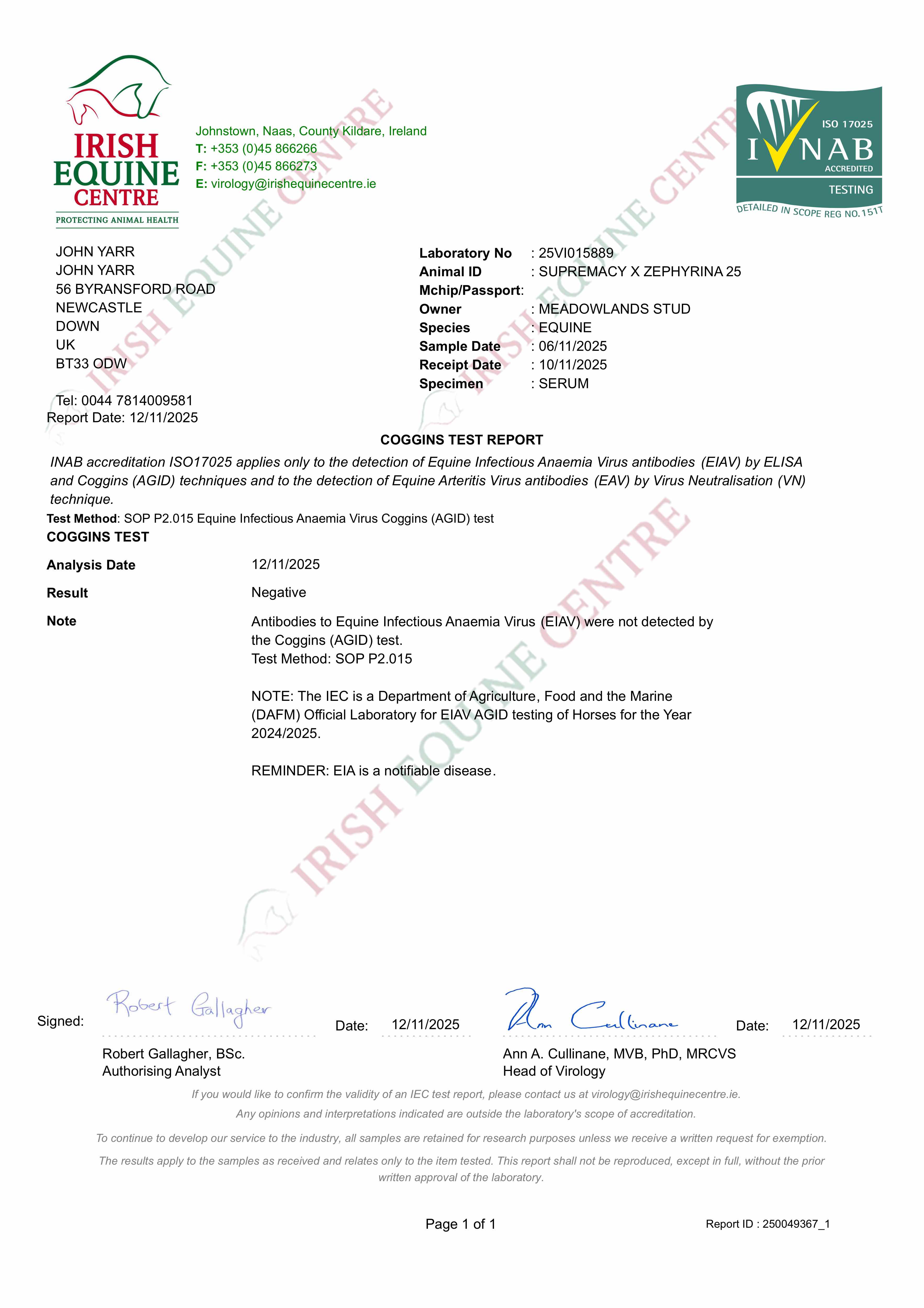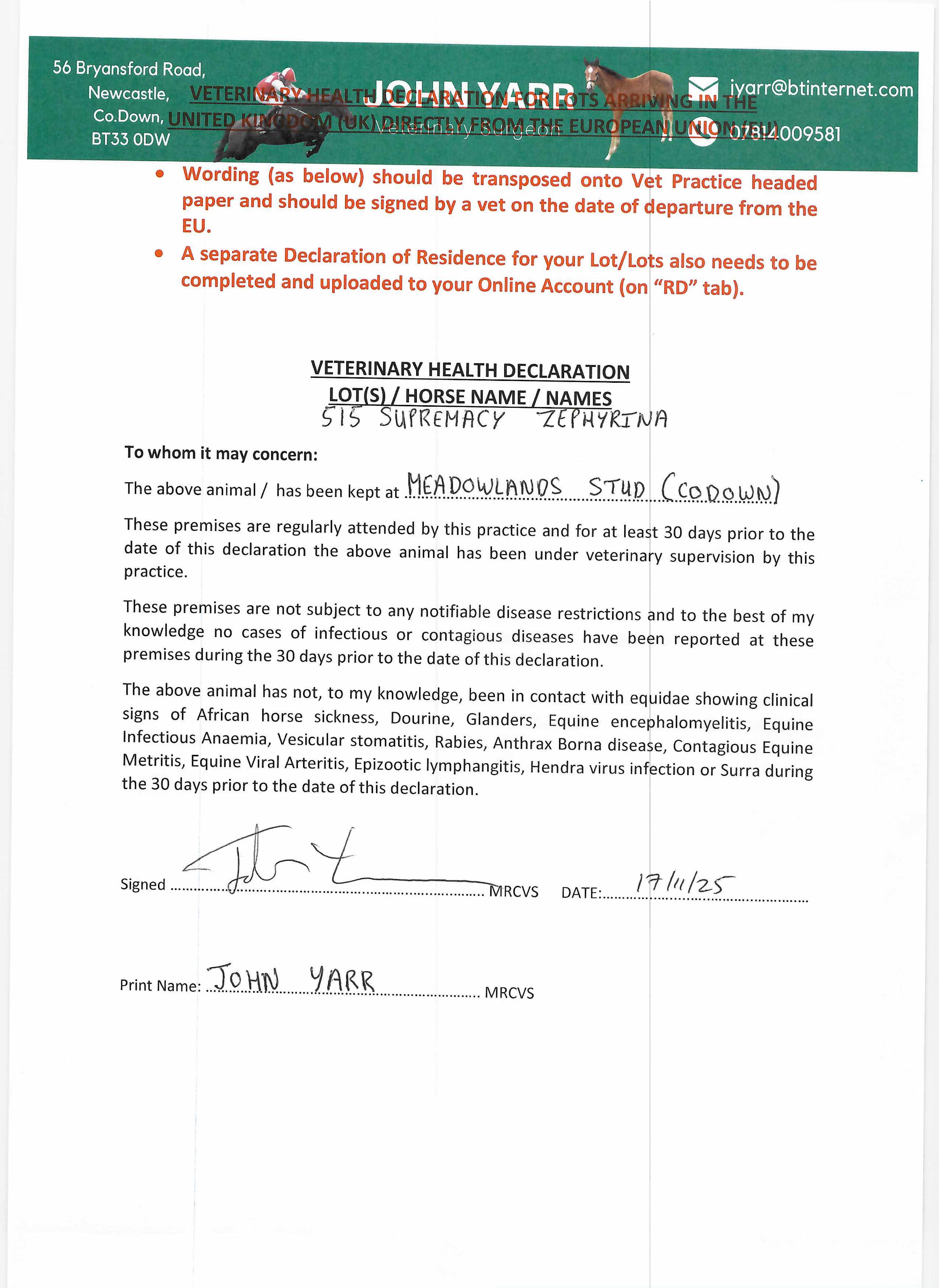 Consignor: Meadowlands Stud (Co.Down)