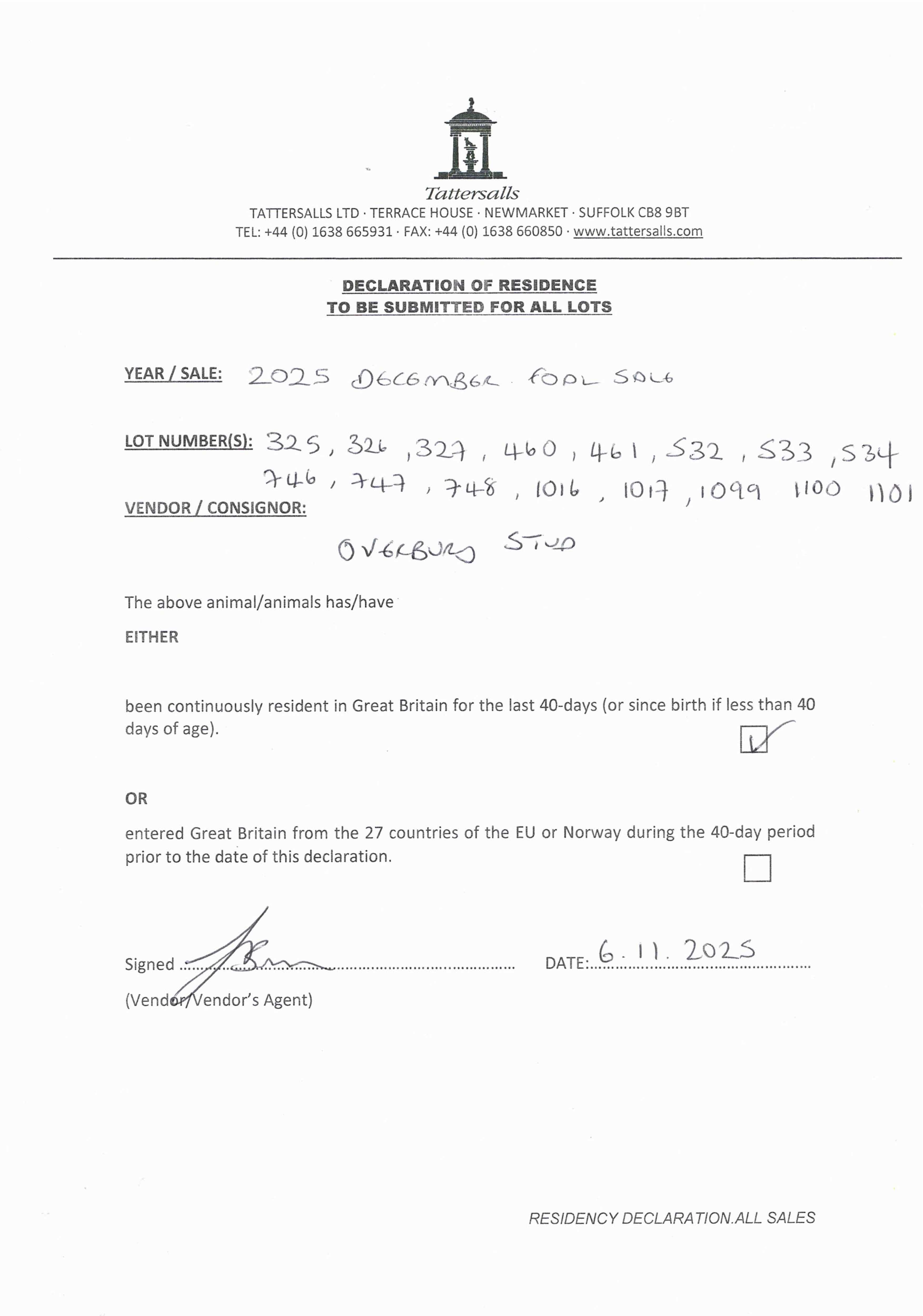 December Foal Sale 2023 lot 594 F. by Ardad (IRE) 2023, Overbury Stud=>Kingsfield Stud 28,000 gns