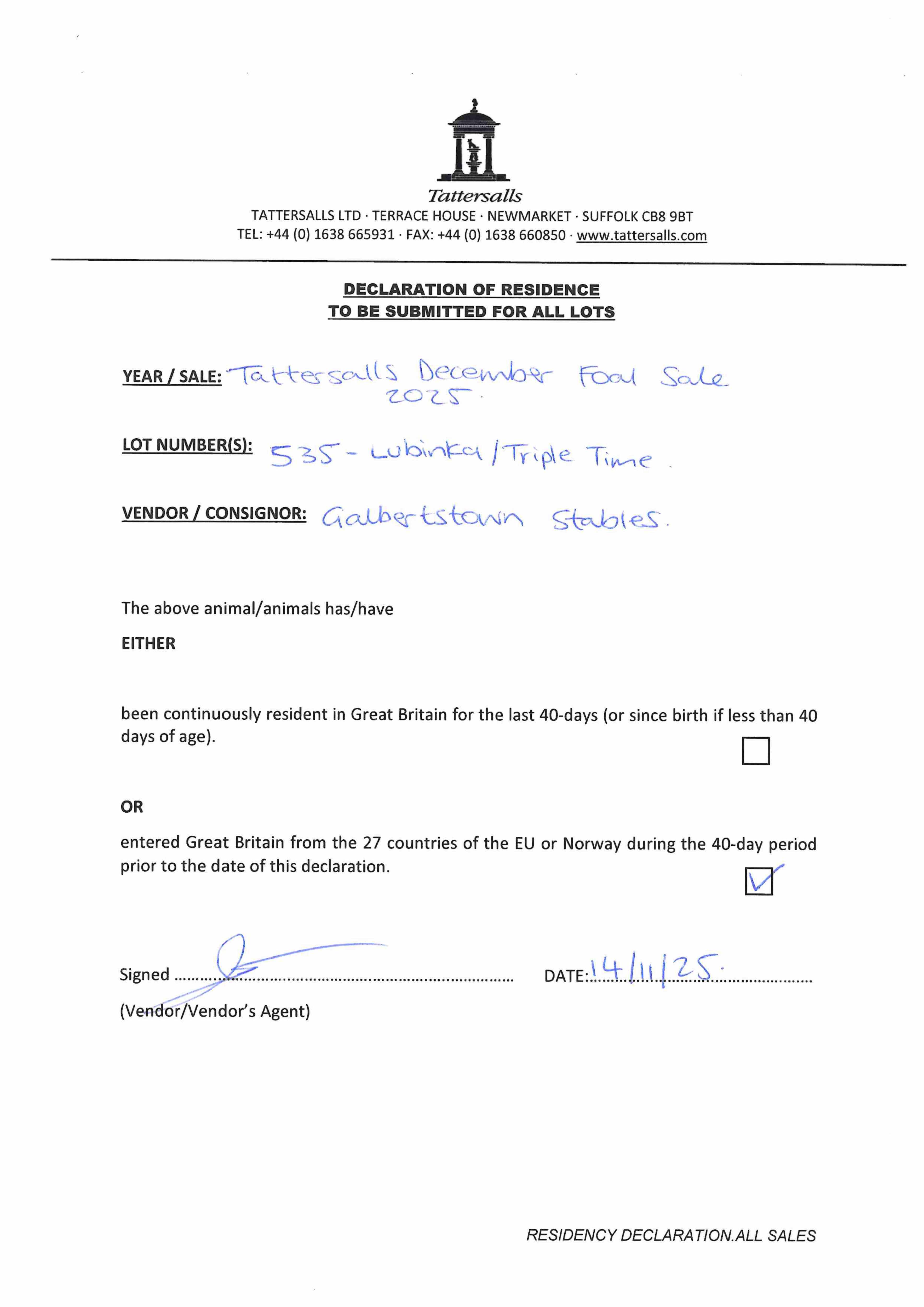 Consignor: Galbertstown Stables, Ireland
