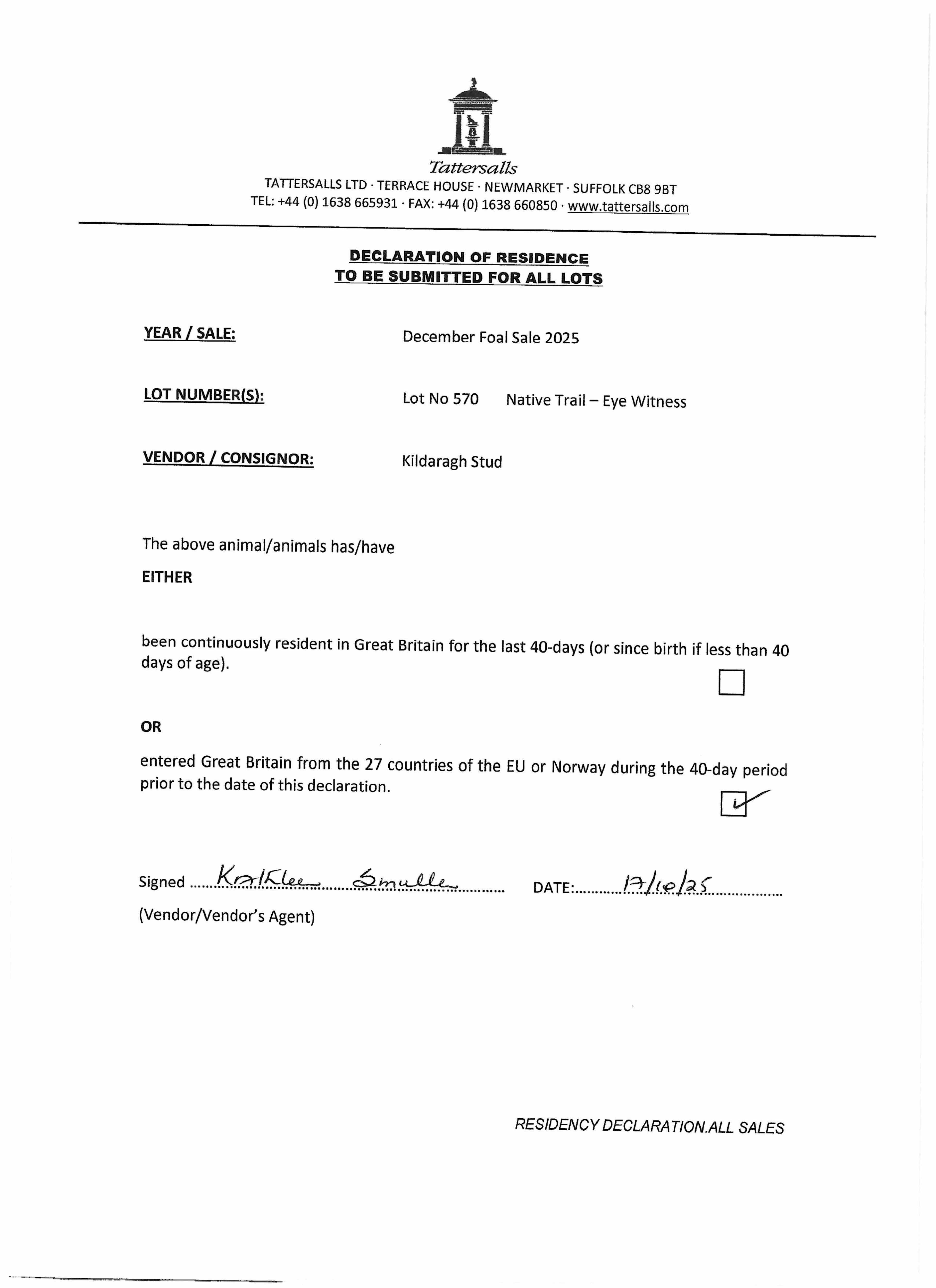 Somerville Yearling Sale 2024 lot 126 F. by Ghaiyyath (IRE) 2023, Barton Stud=>Vendor 16,000 gns