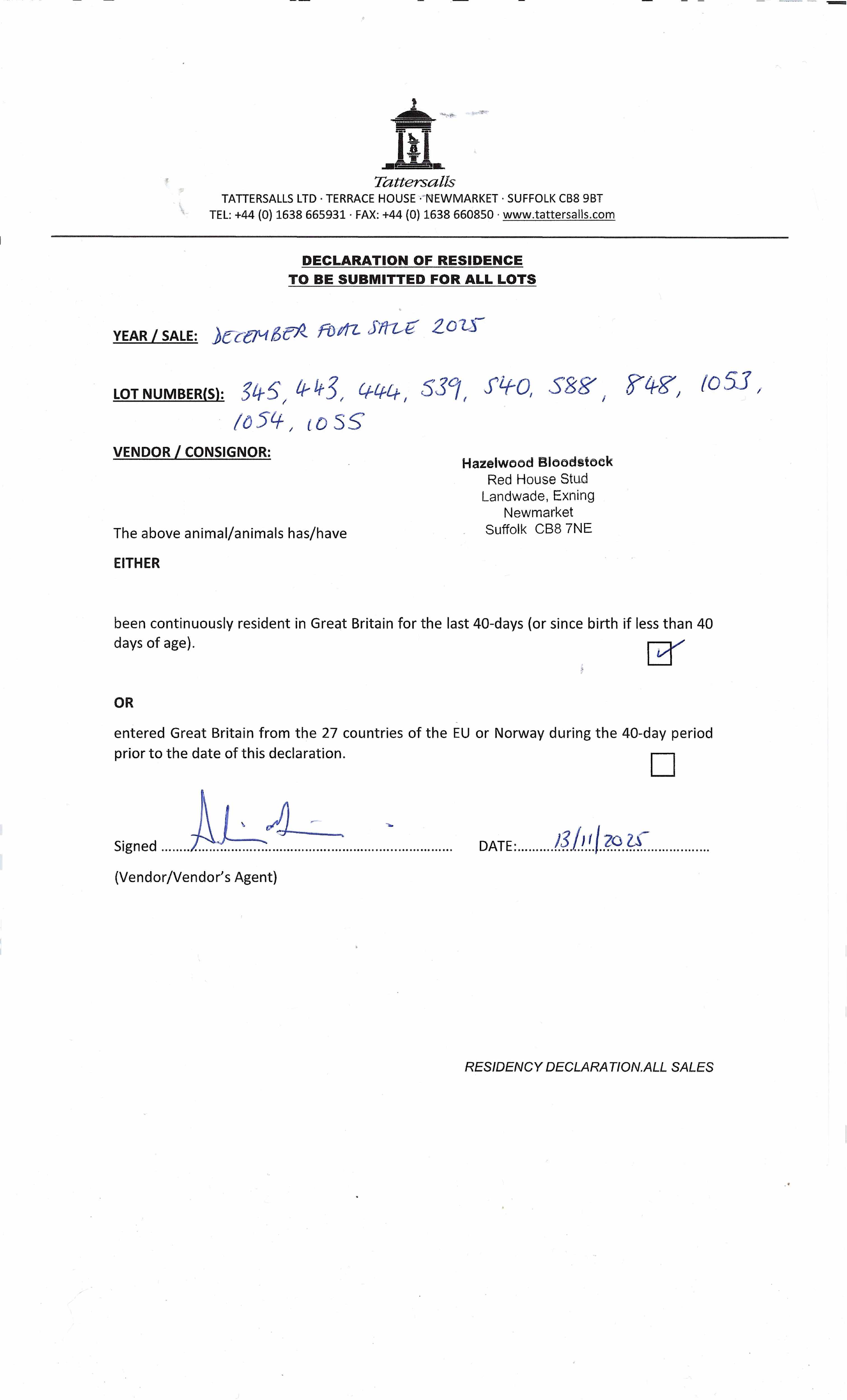 Contact: Adrian O'Brien ✆ 07468456488 ✉ adrian@hazelwoodbloodstock.co.uk
