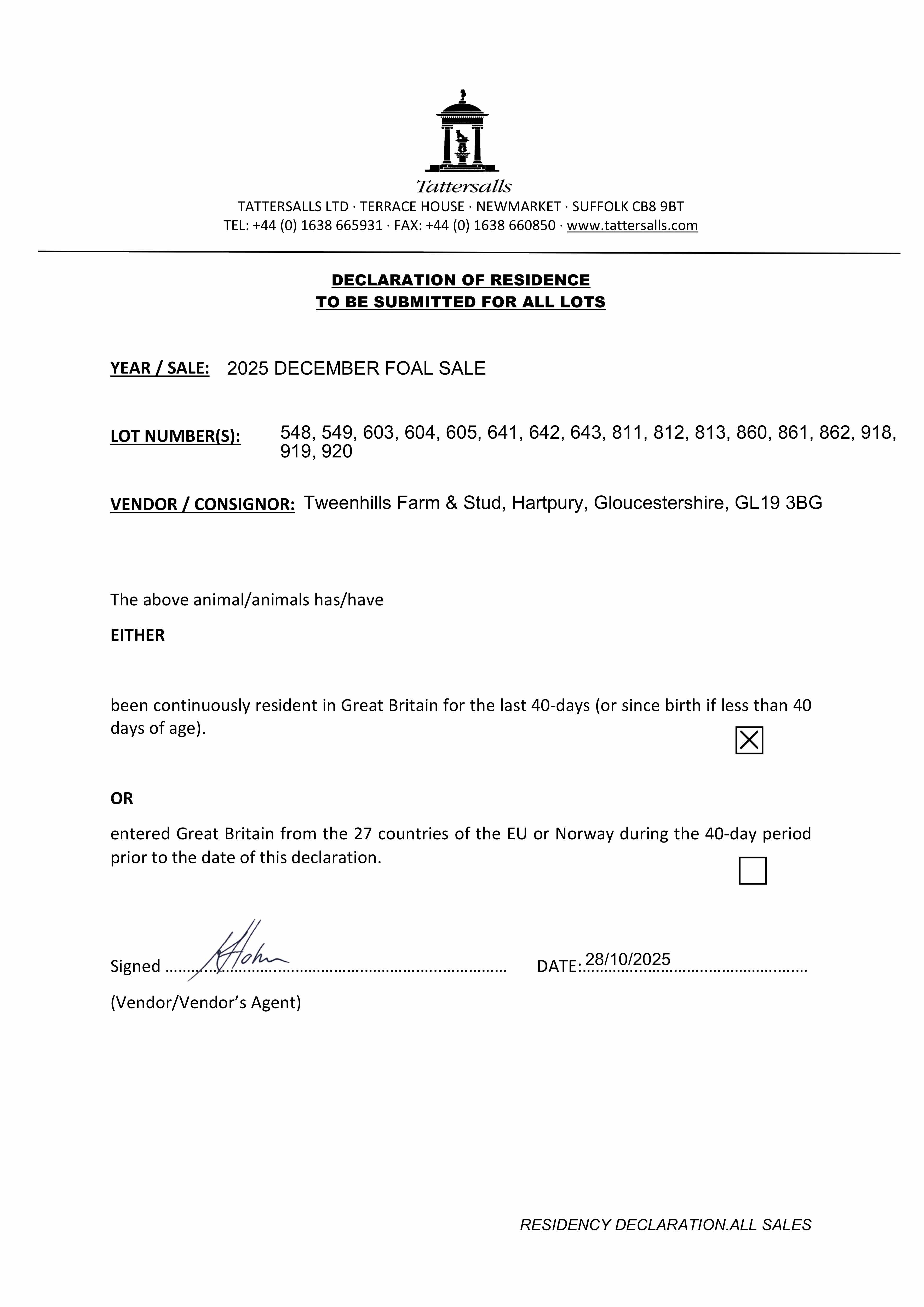 Consignor: Tweenhills