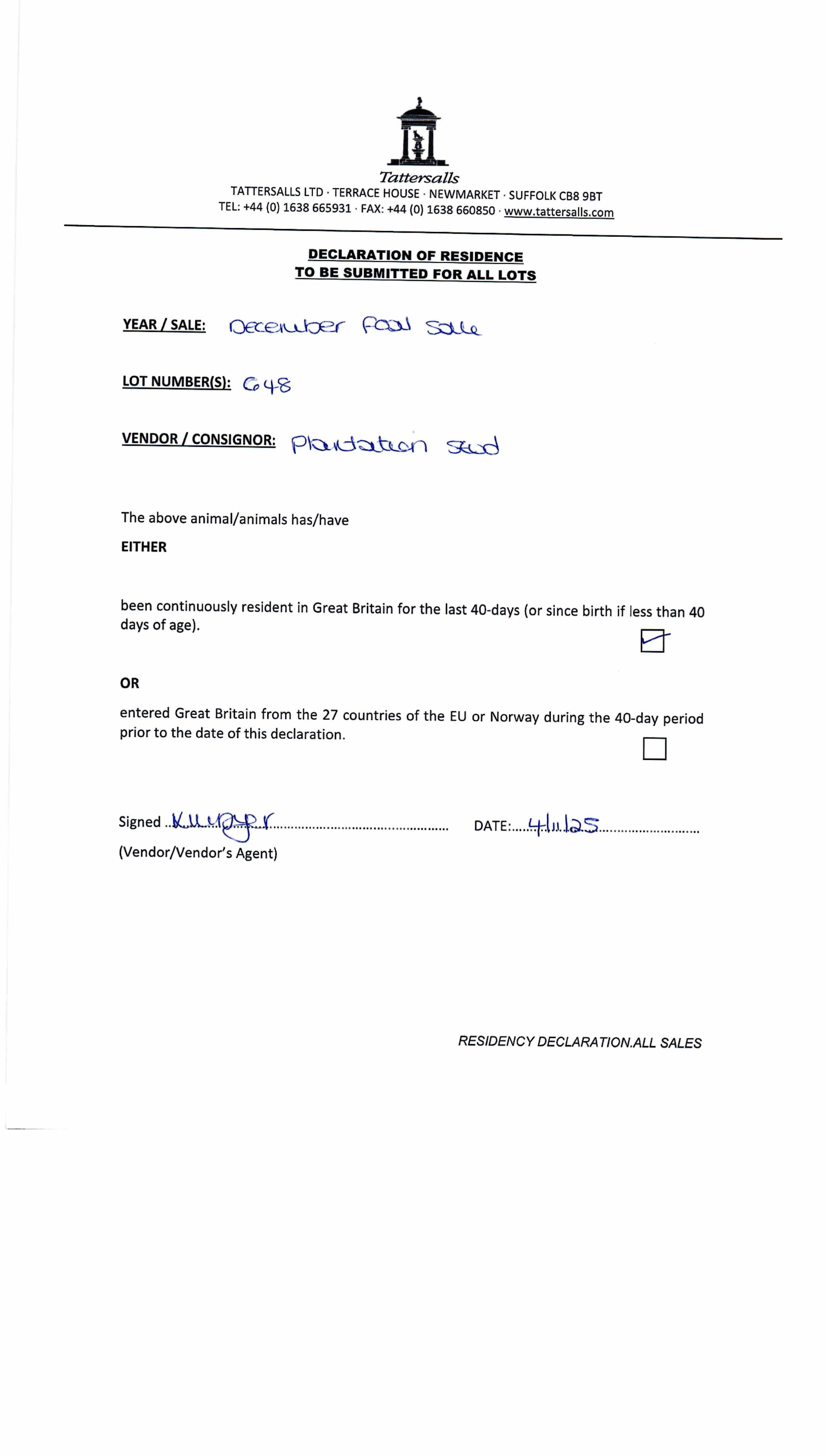 Consignor: Plantation Stud