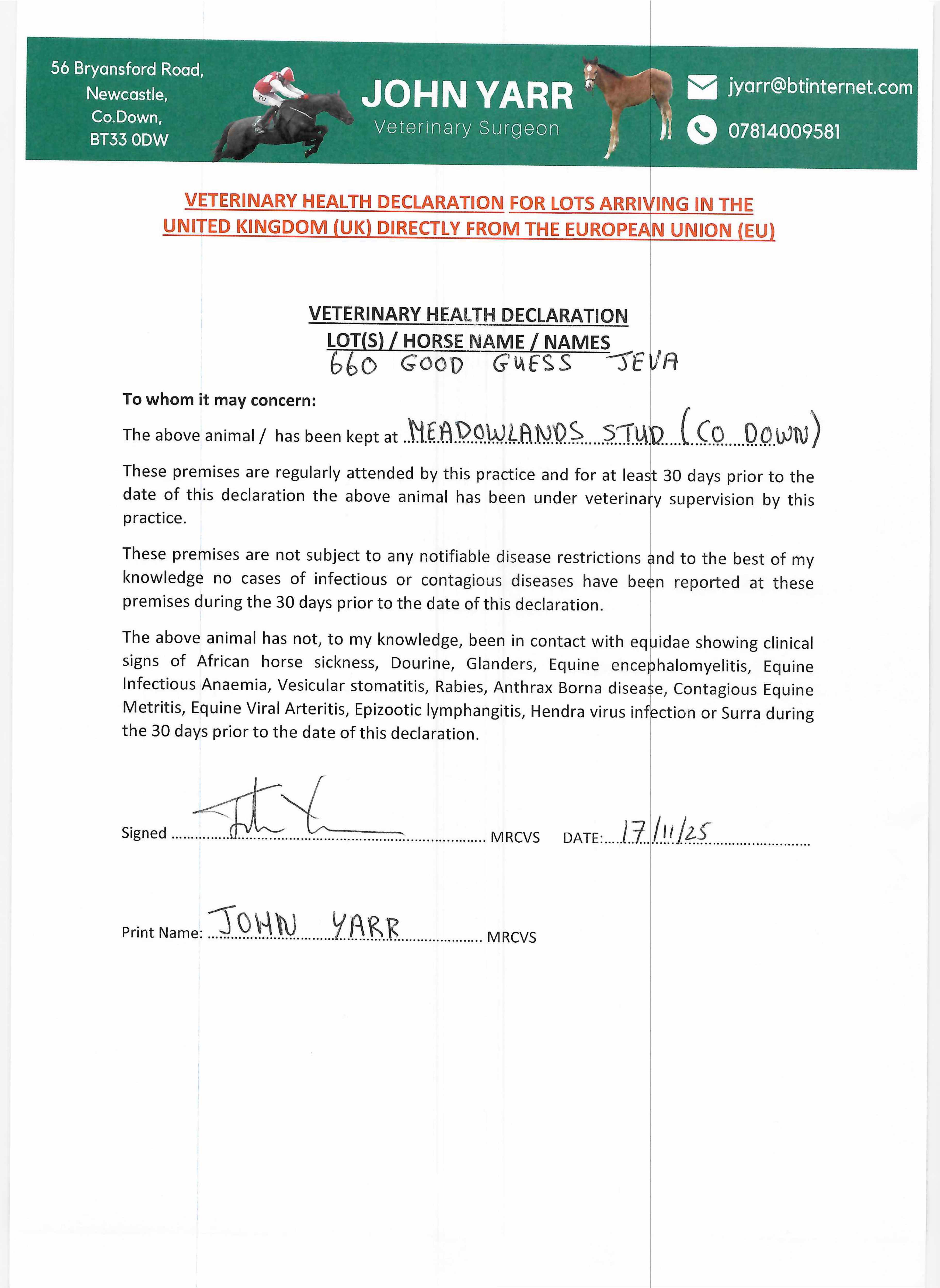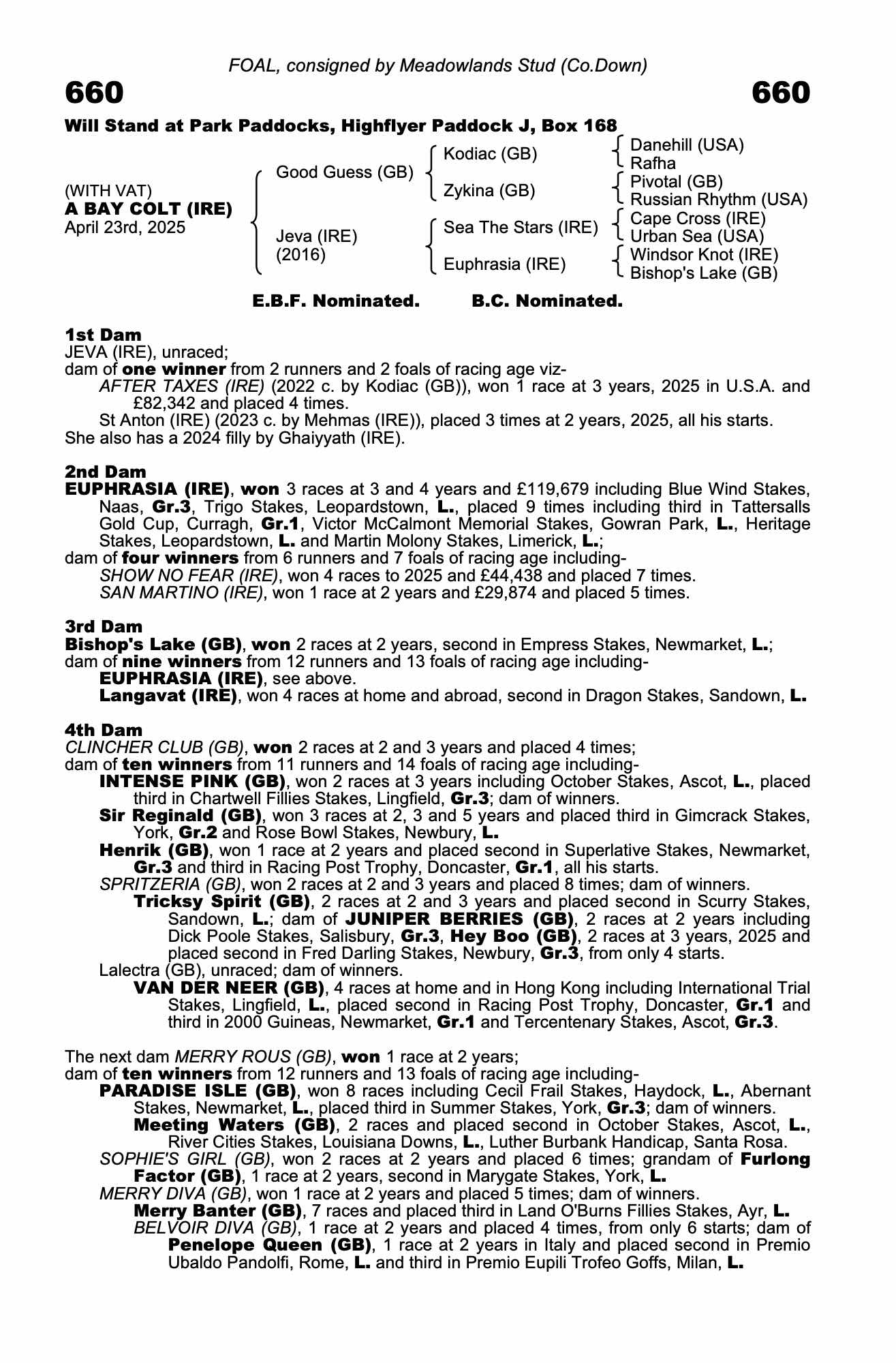 Consignor: Meadowlands Stud (Co.Down)