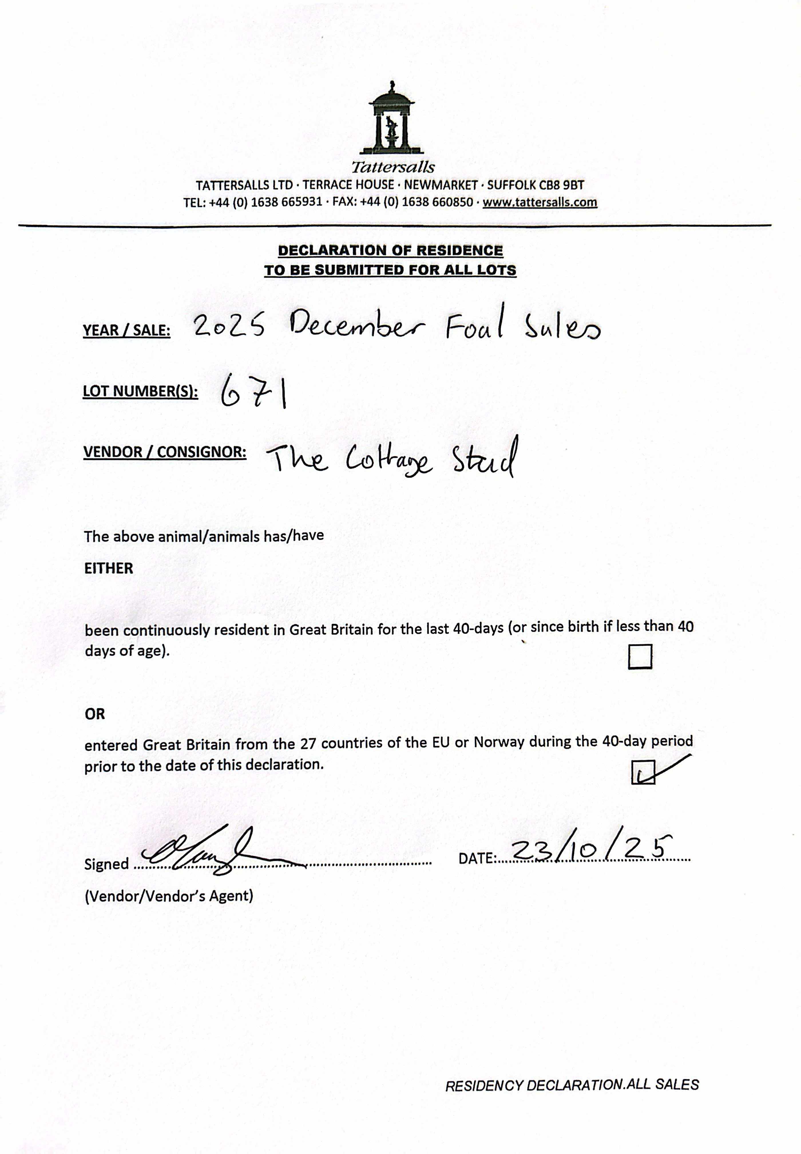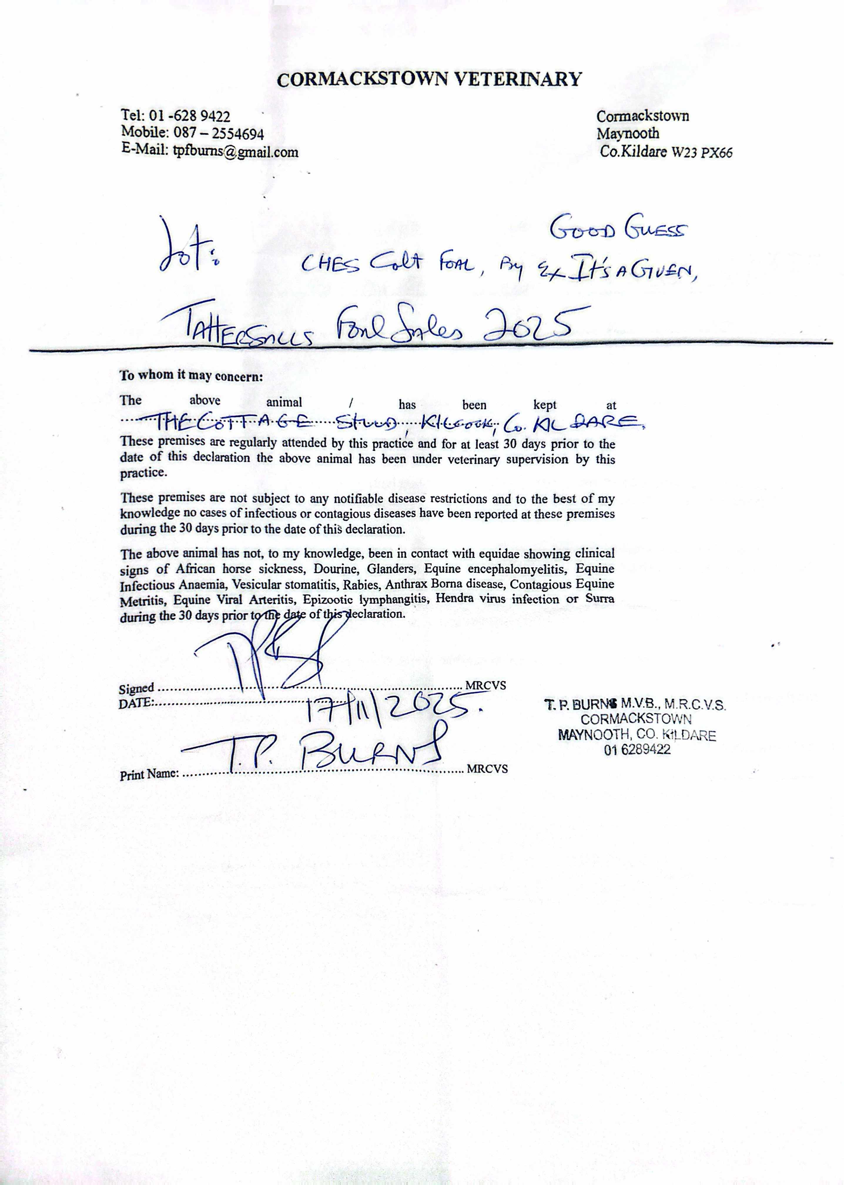 Consignor: The Cottage Stud, Ireland