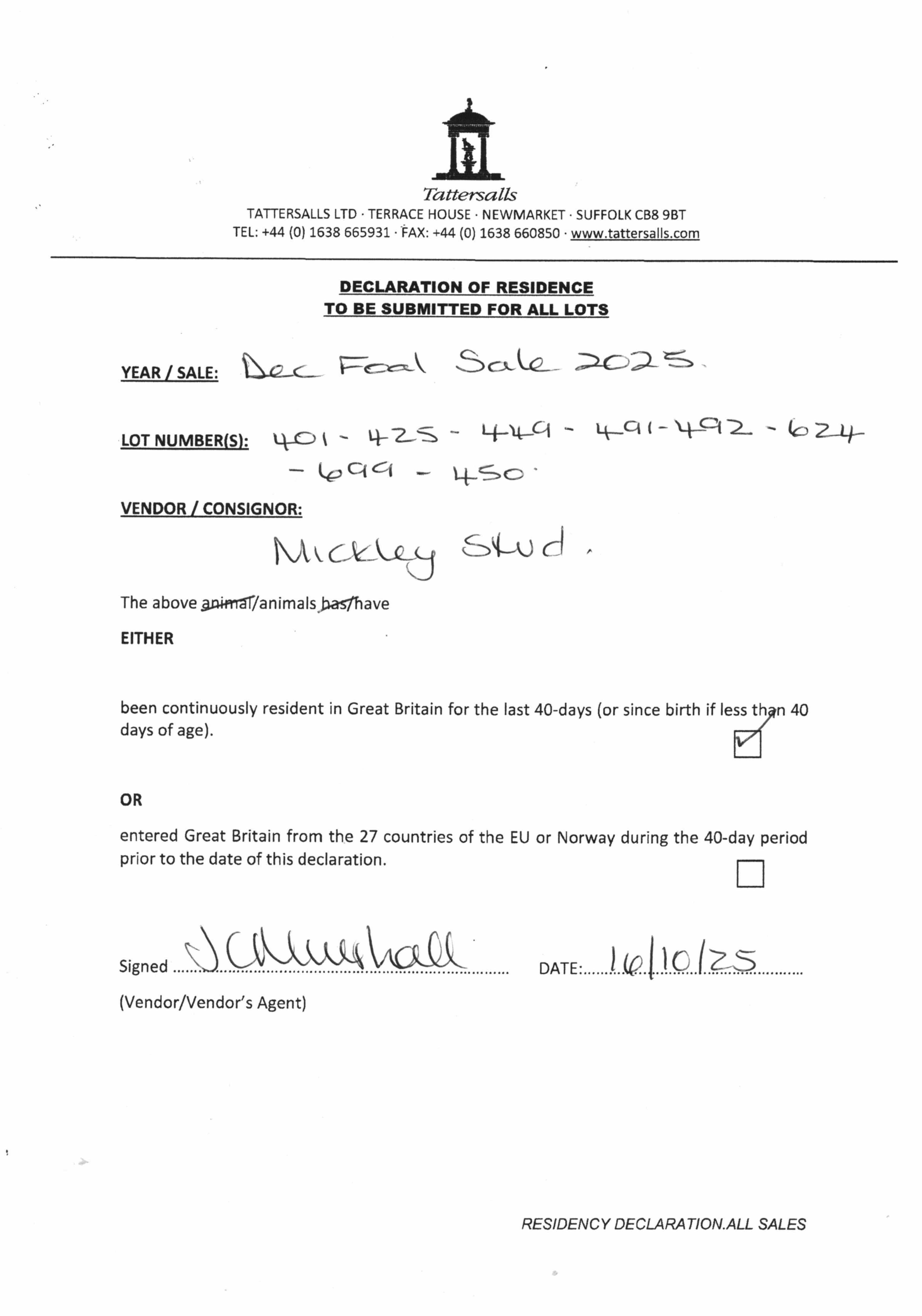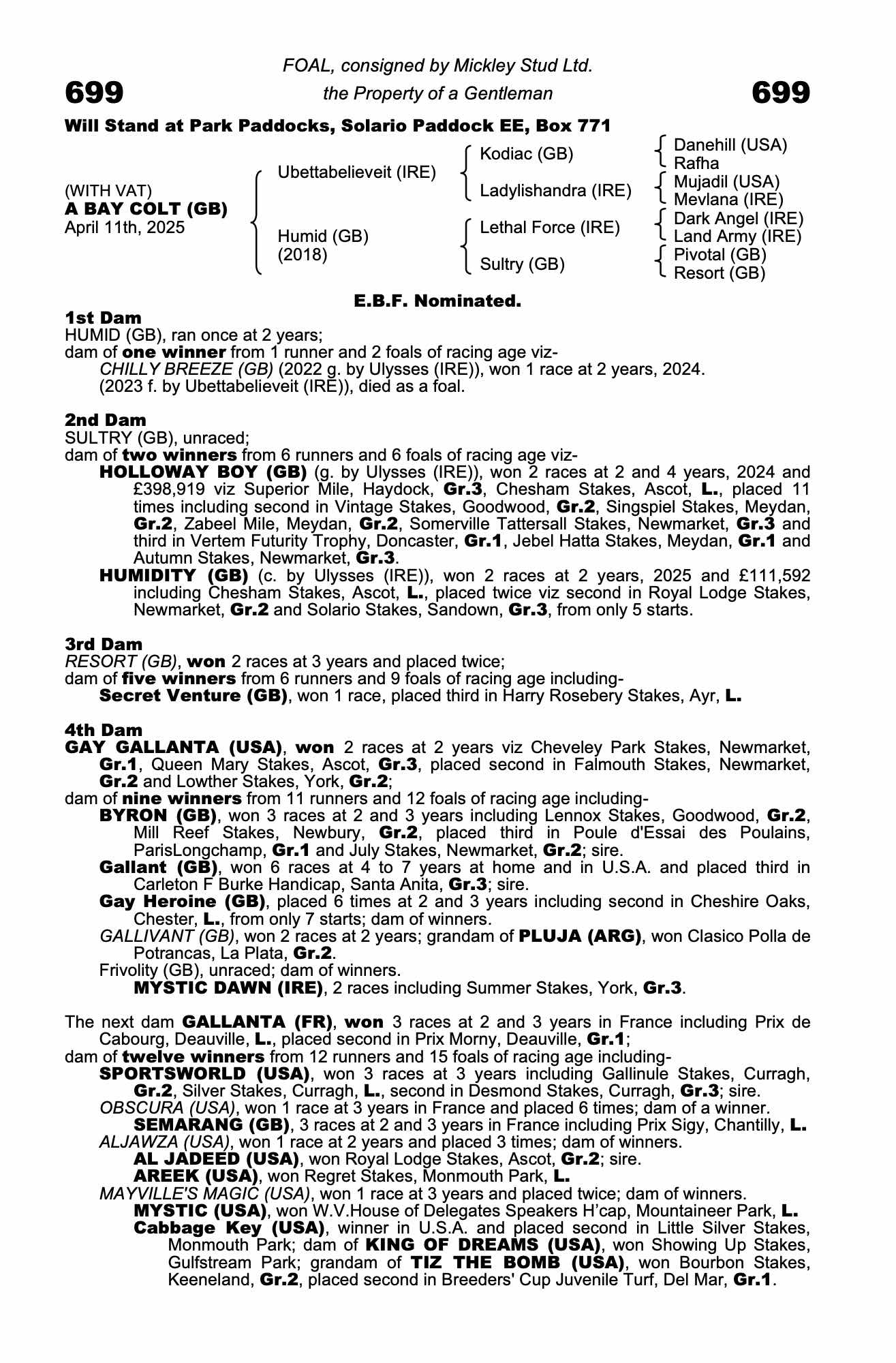 Consignor: Mickley Stud Ltd.