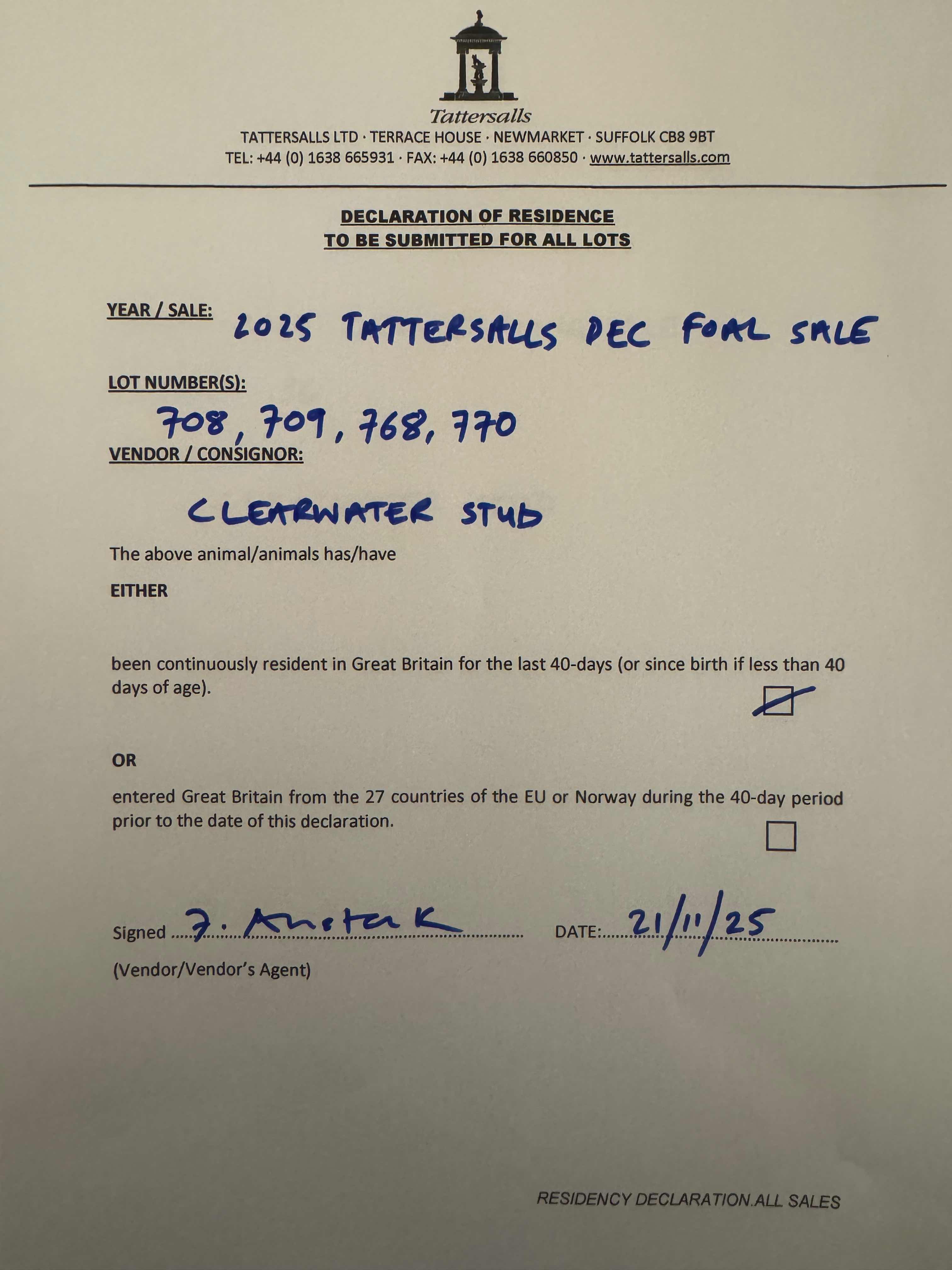 December Foal Sale 2023 lot 776 F. by Bated Breath (GB) 2023, Clearwater Stud=>Lot Not Sold 38,000 gns