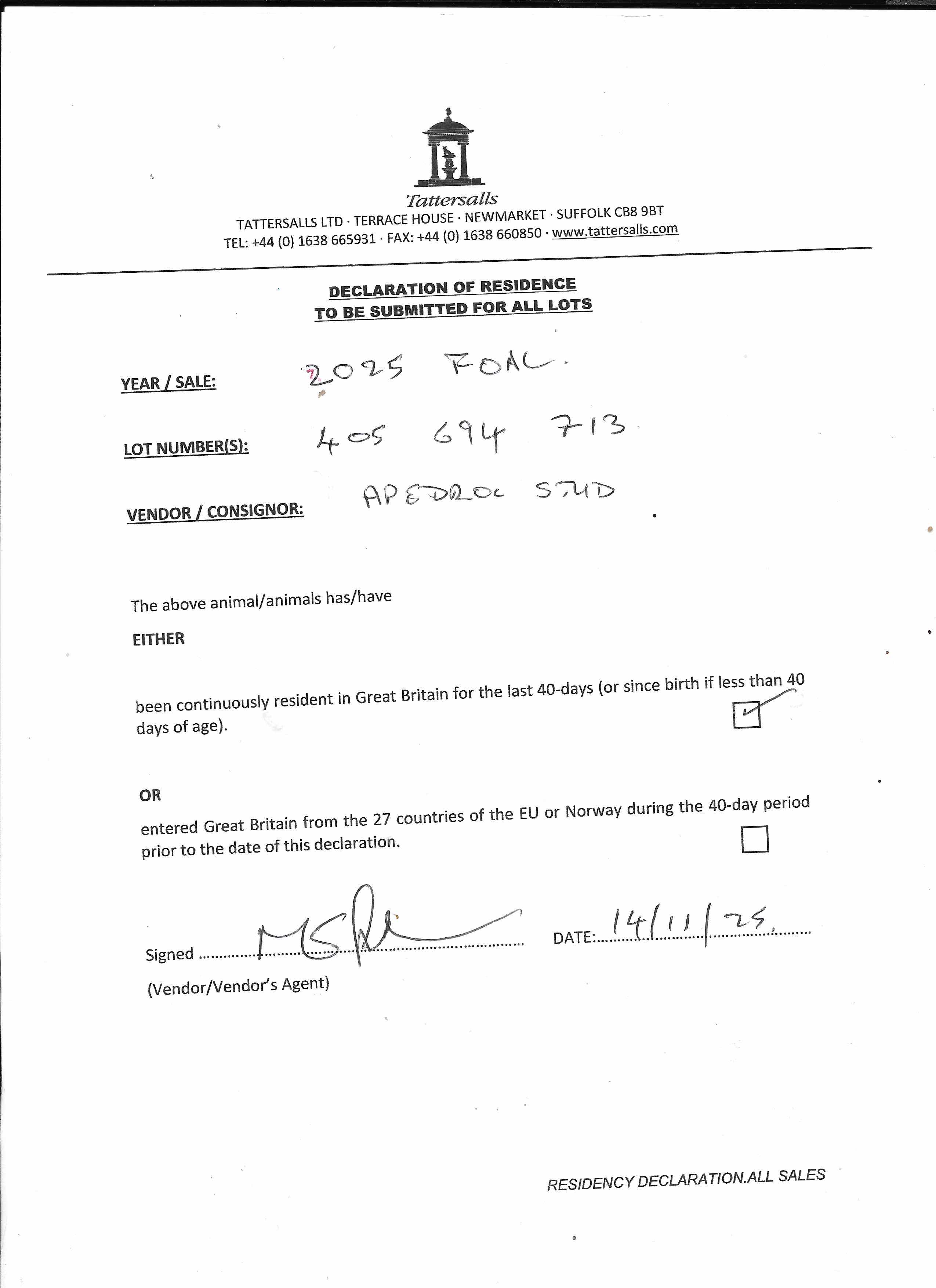 Consignor: Apedroc Stud