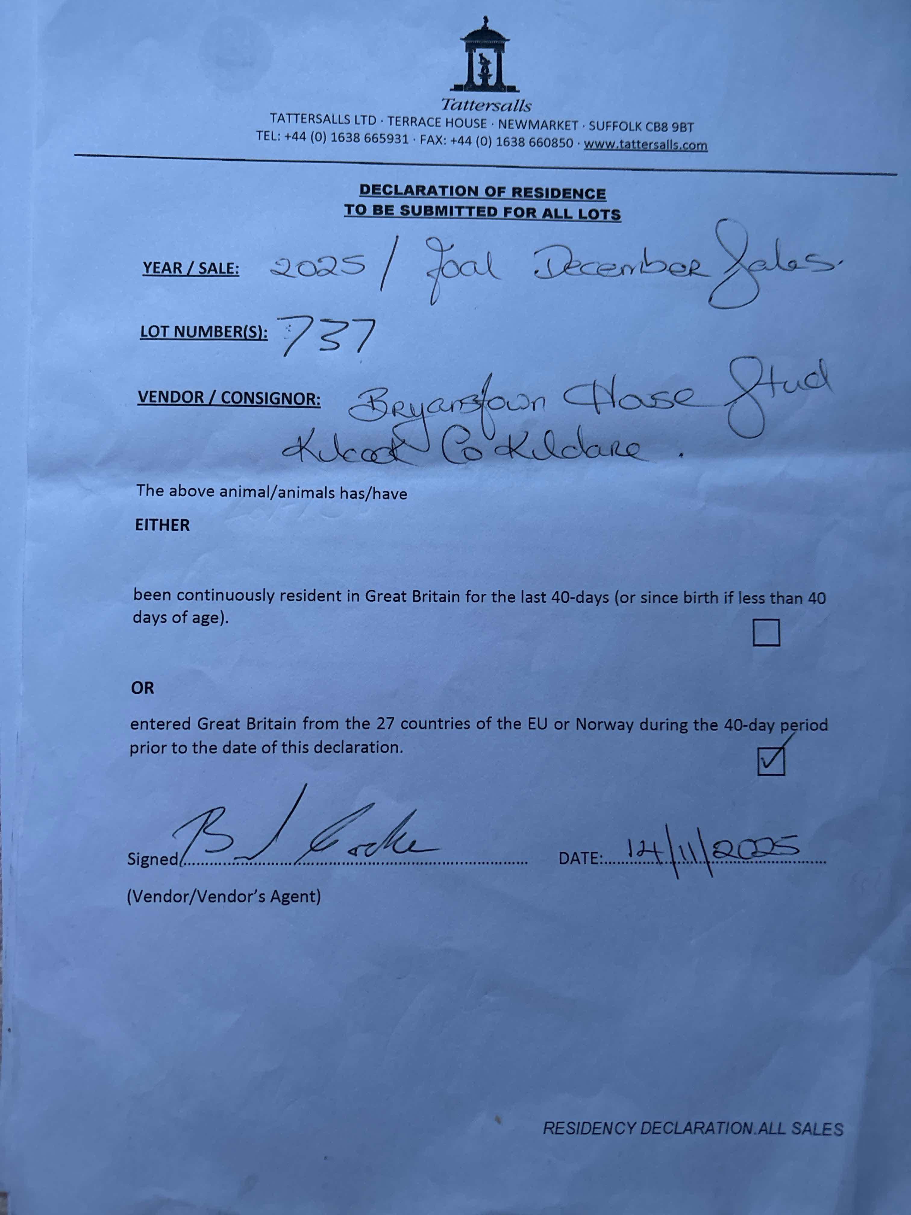 December Foal Sale 2024 lot 791 F. 2024, Bryanstown House Stud, Ireland=>Lot Not Sold 22,000 gns