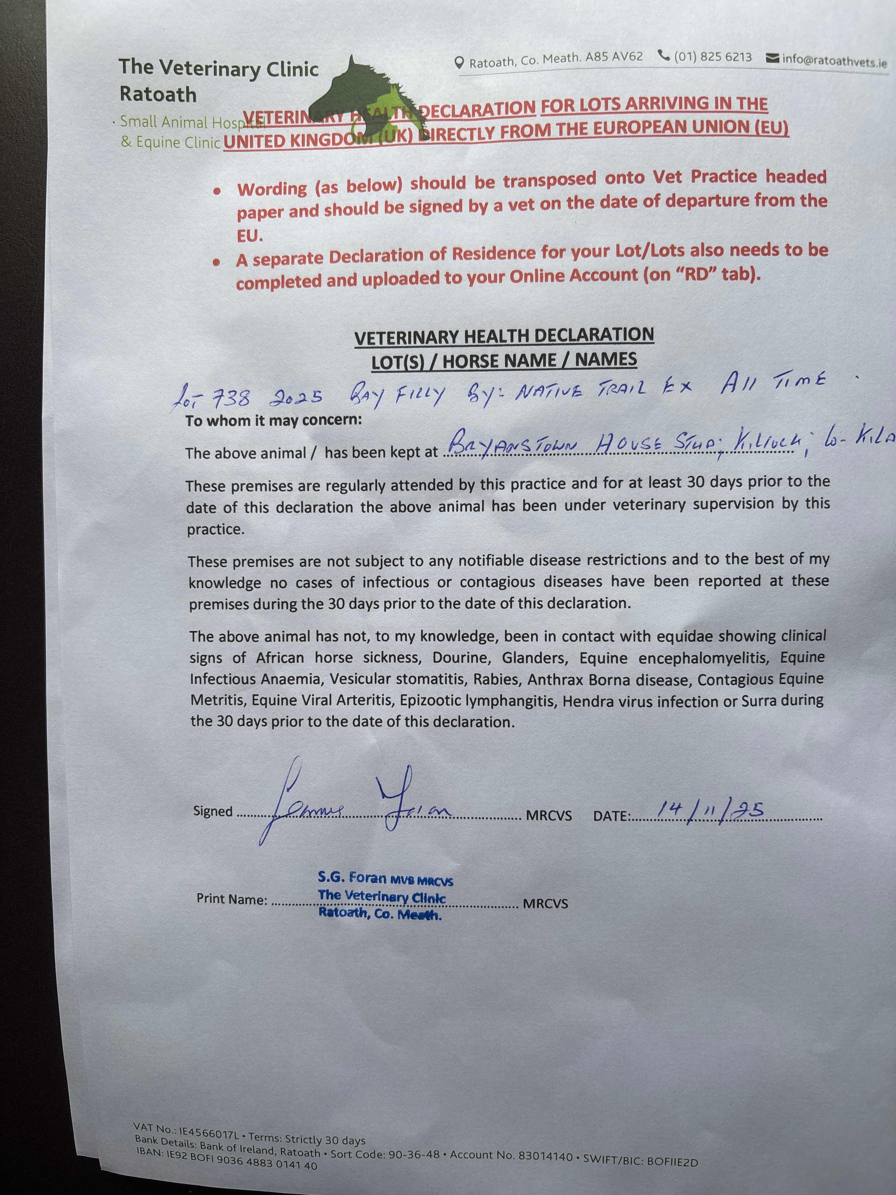 December Foal Sale 2023 lot 834 F. by Invincible Spirit (IRE) 2023, Bryanstown House Stud, Ireland=>Lot Not Sold 38,000 gns