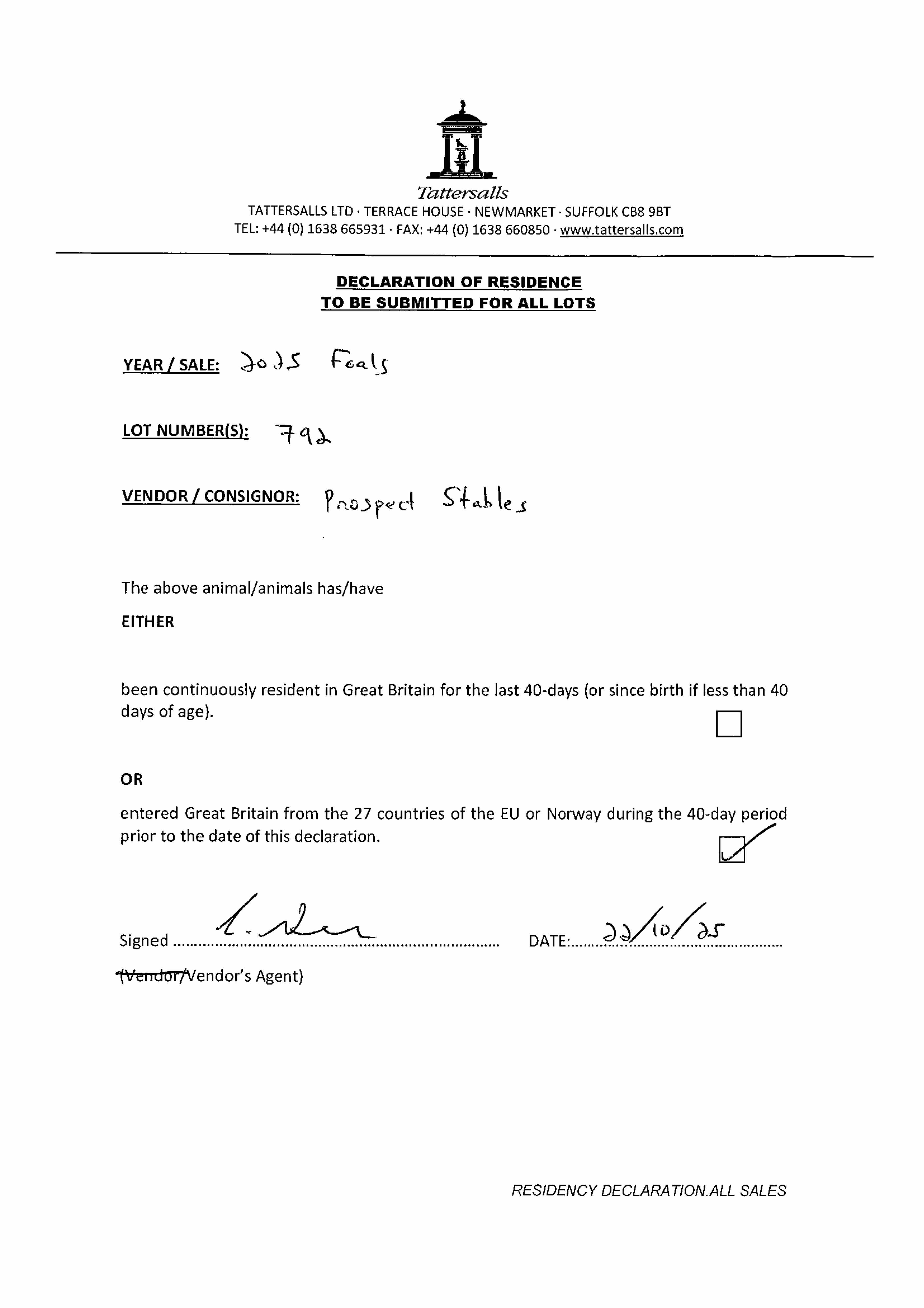 Consignor: Prospect Stables, Ireland