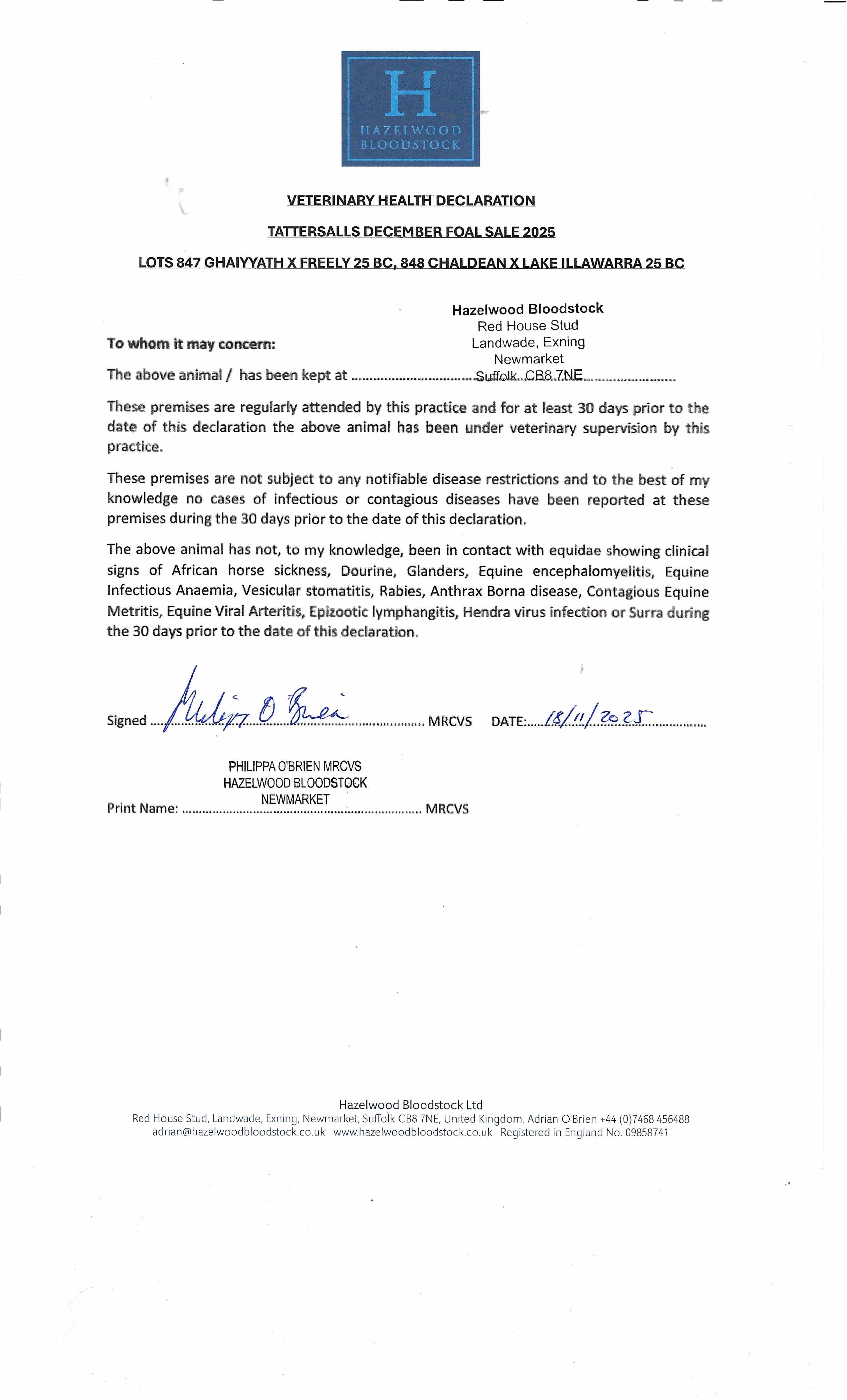 Contact: Adrian O'Brien ✆ 07468456488 ✉ adrian@hazelwoodbloodstock.co.uk