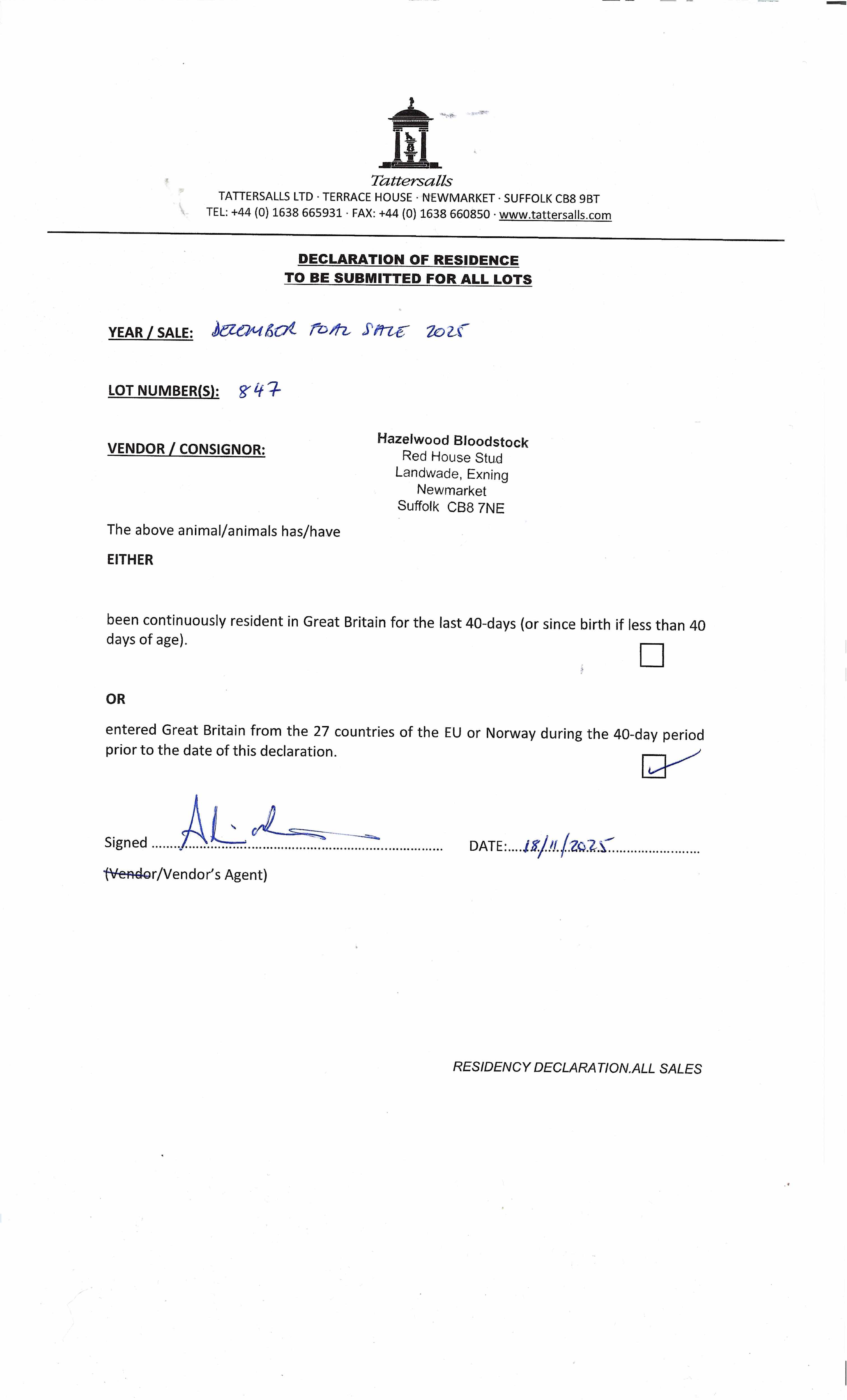 🇬🇧 Location: Hazelwood Bloodstock, Red House Stud, Landwade, Exning, Newmarket, CB8 7NE, United Kingdom