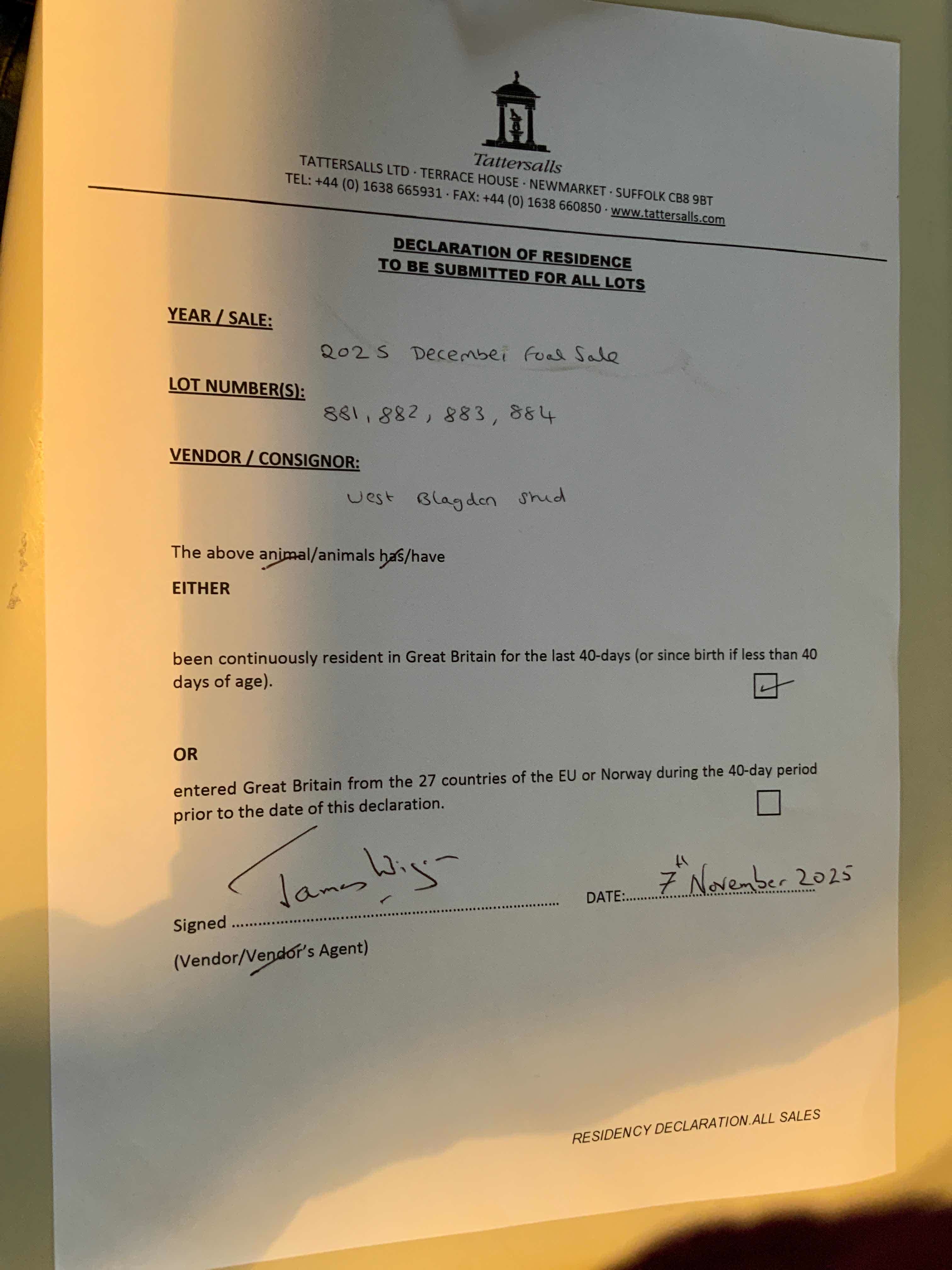 Consignor: West Blagdon Stud