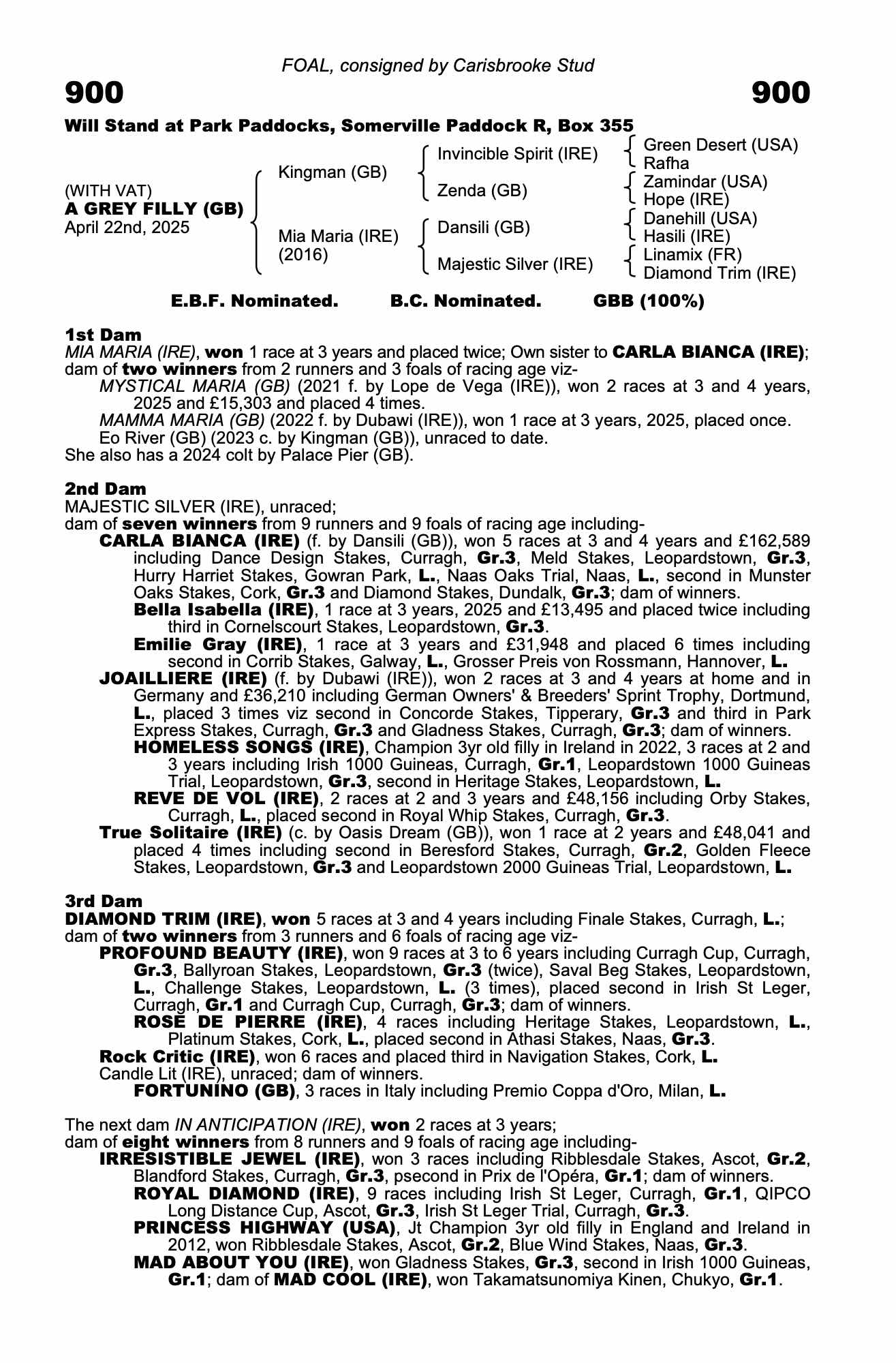 Consignor: Carisbrooke Stud