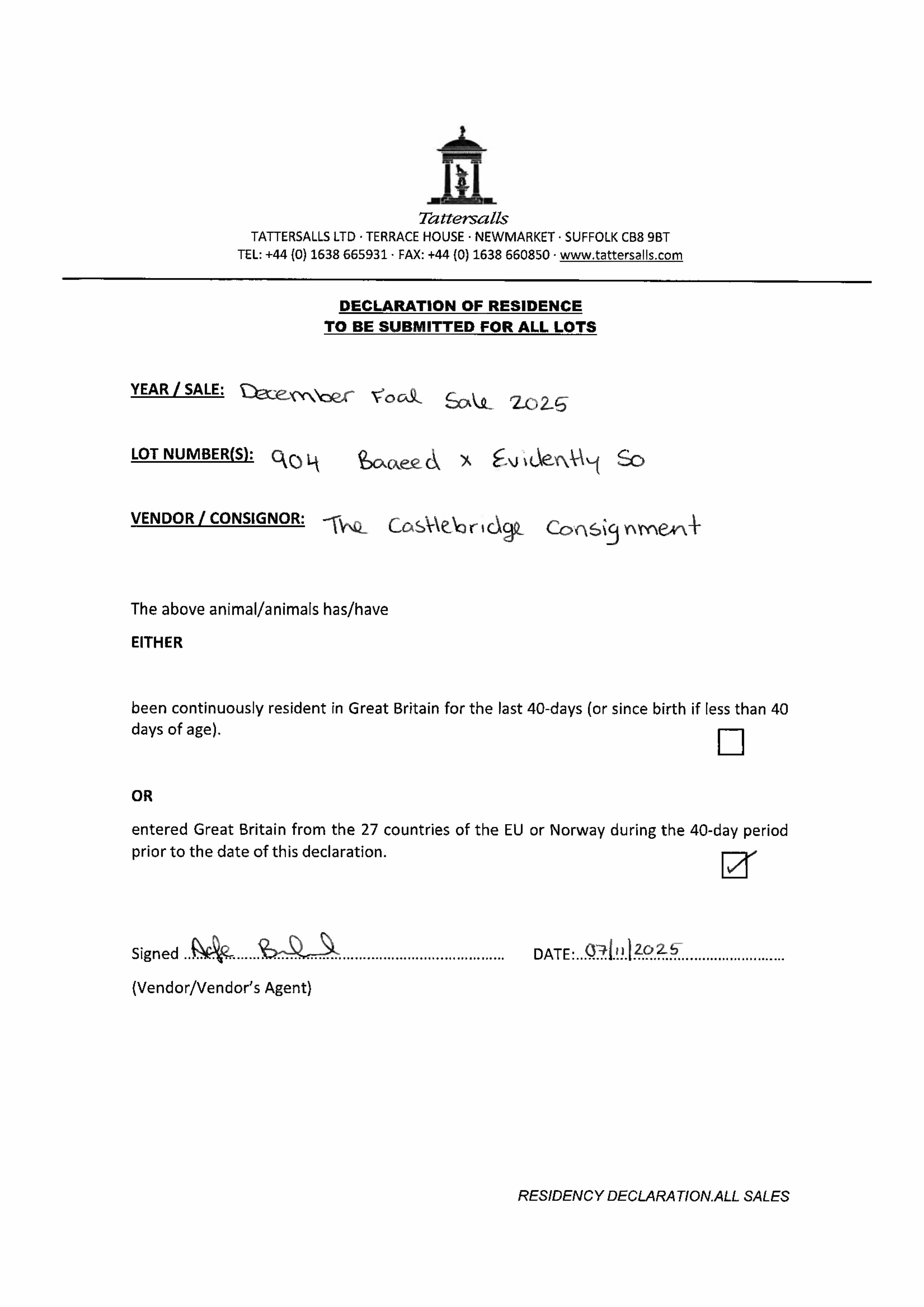 Consignor: The Castlebridge Consignment