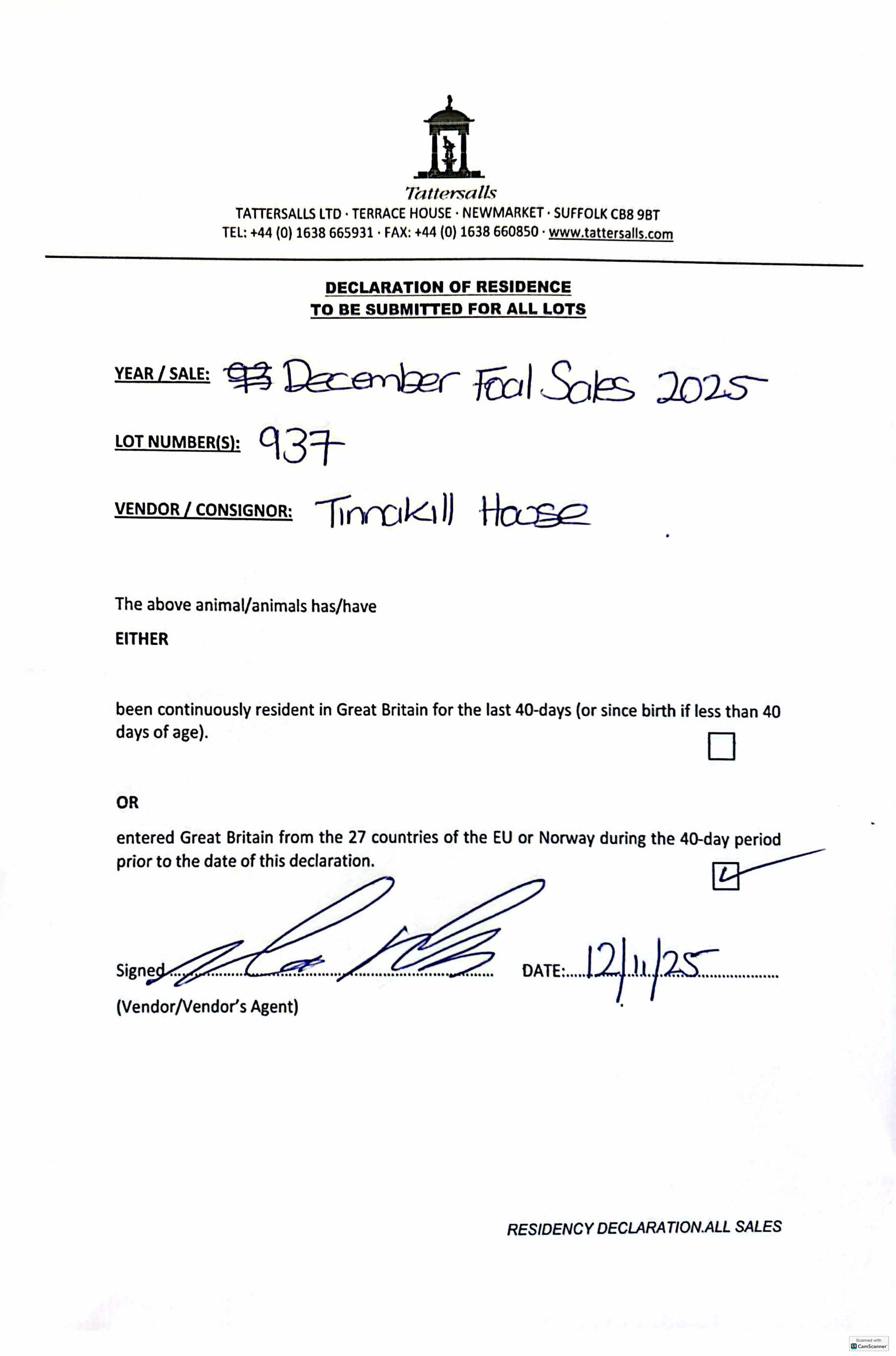 Consignor: Tinnakill House, Ireland