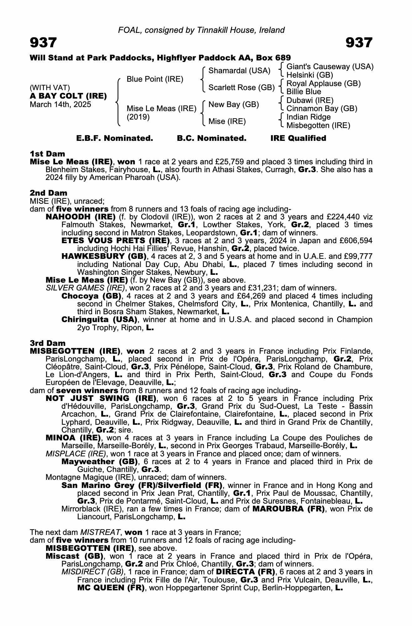 December Foal Sale 2024 lot 960 F. by American Pharoah (USA) 2024, Tinnakill House, Ireland=>Vendor 80,000 gns