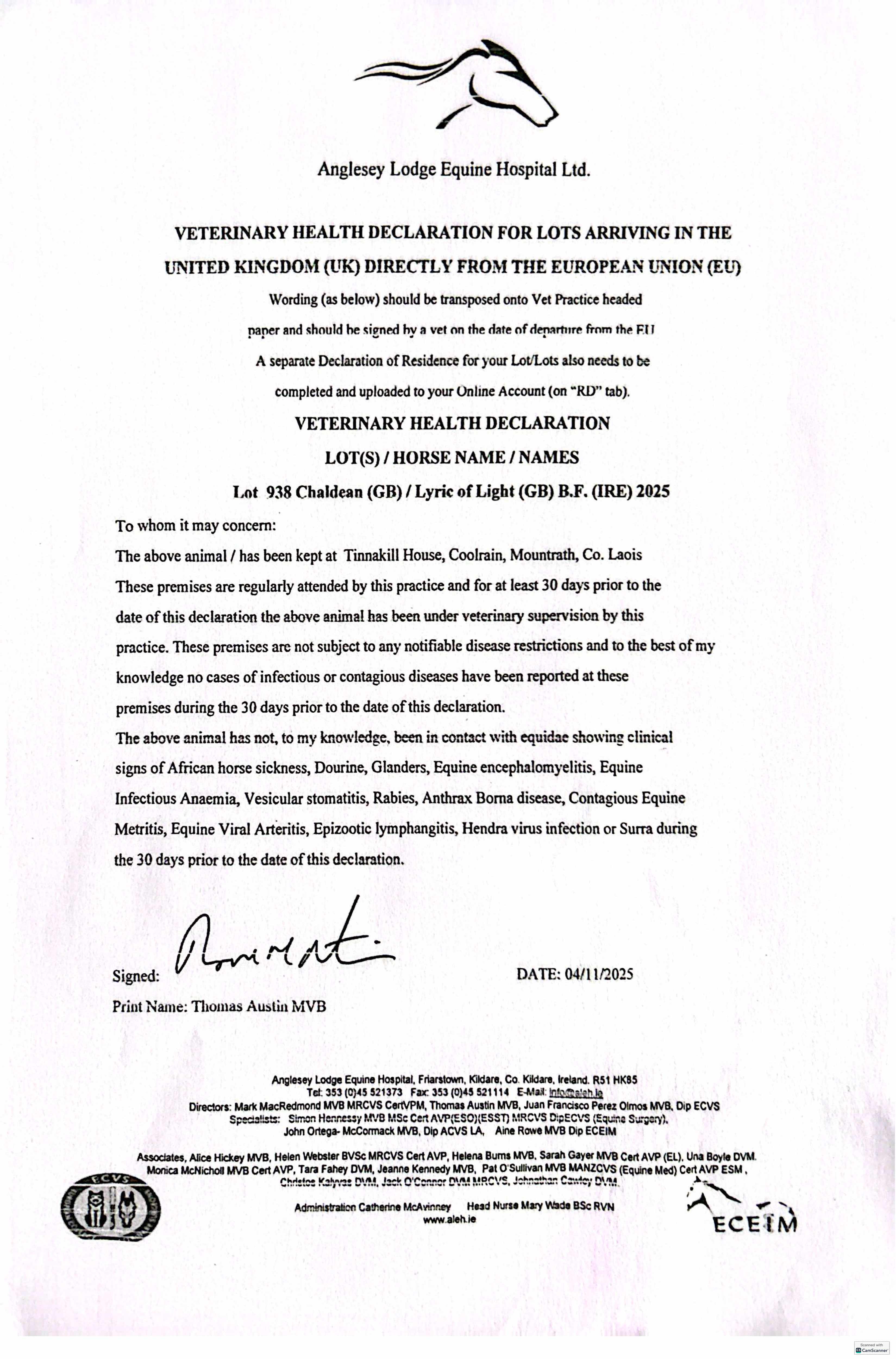 Consignor: Tinnakill House, Ireland