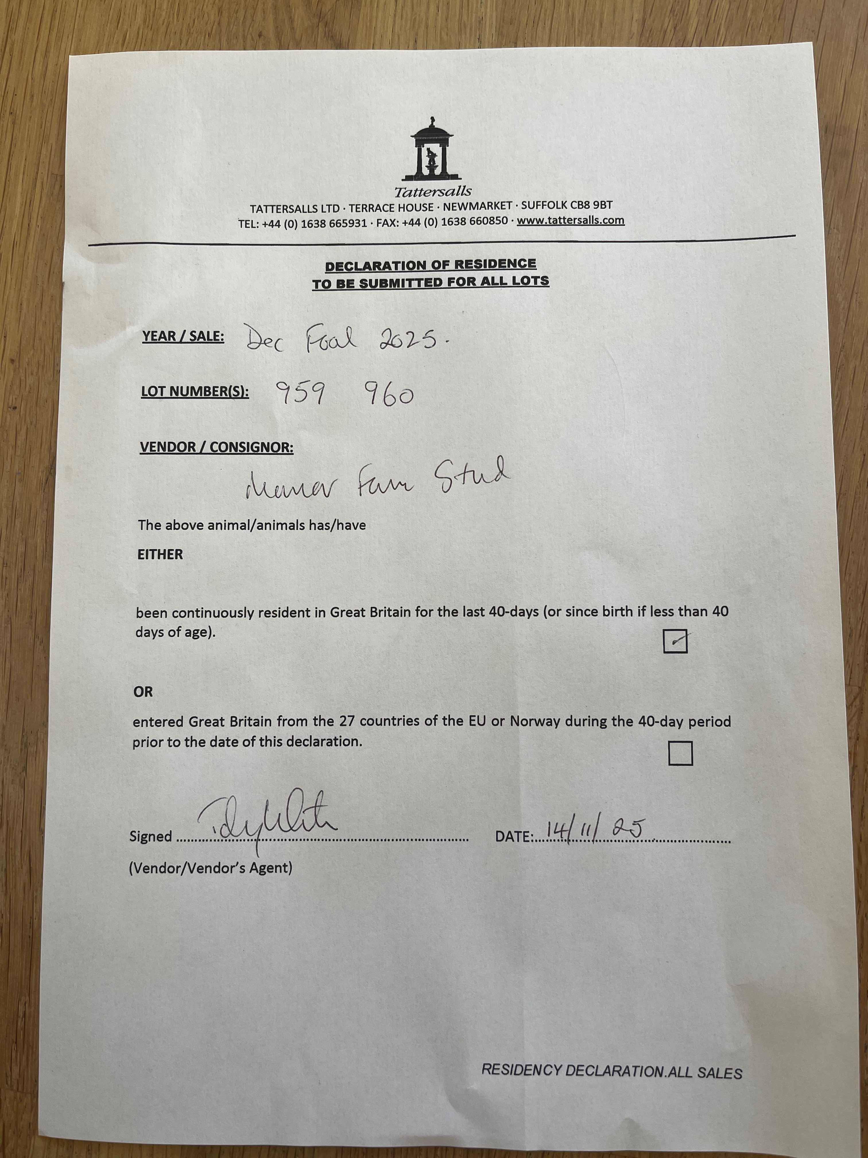 Consignor: Manor Farm Stud (Rutland)